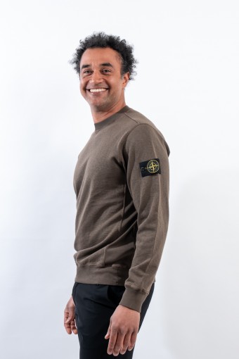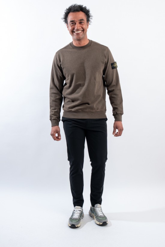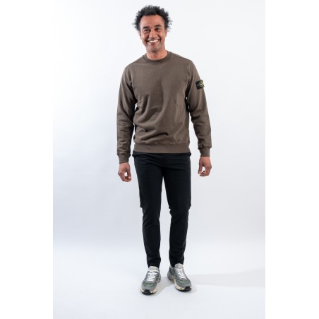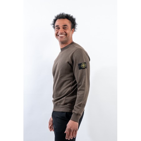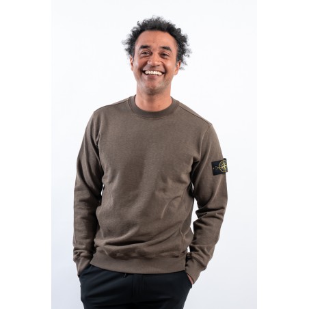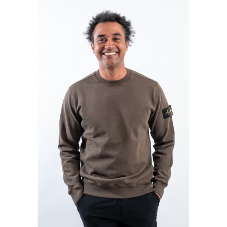 Crewneck sweatshirt made of malfilé cotton fleece with a slub effect by STONE ISLAND. The brand's experience in garment dyeing is also exploited in this model, enriched by an OLD effect, a technique that involves subsequent discoloration on the finished garment. This creates a three-dimensional effect giving the look a lived-in look to the fabric.