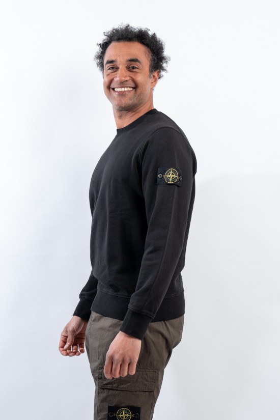 Crewneck sweatshirt STONE ISLAND made of soft organic cotton fleece. Featuring elasticated ribbed details on the cuffs, neckline and hem and bezel detail under the back neckline. Garment-dyed model and iconic STONE ISLAND badge applied on the left sleeve.
