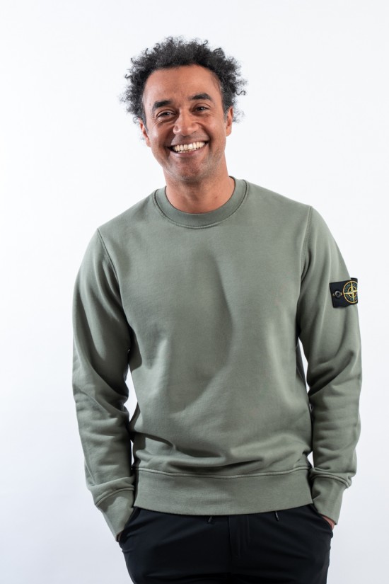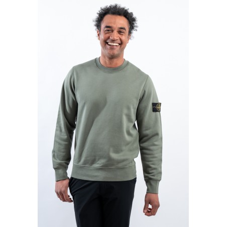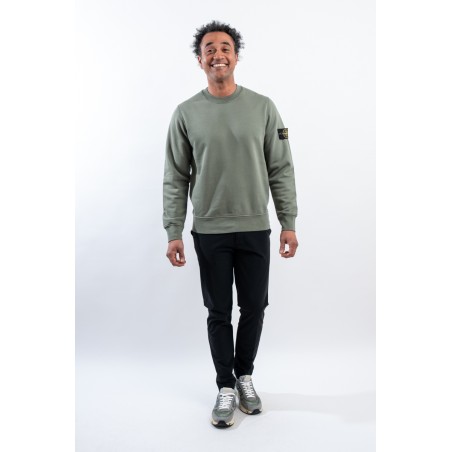 Crewneck sweatshirt STONE ISLAND made of soft organic cotton fleece. Featuring elasticated ribbed details on the cuffs, neckline and hem and bezel detail under the back neckline. Garment-dyed model and iconic STONE ISLAND badge applied on the left sleeve.