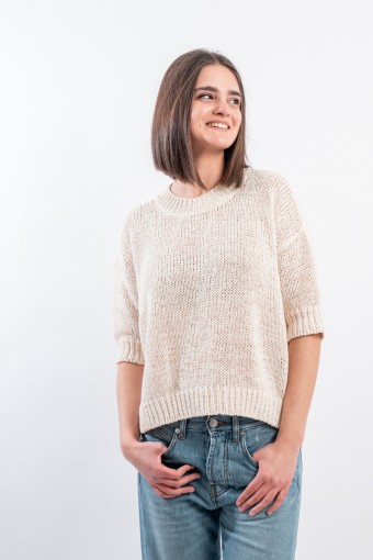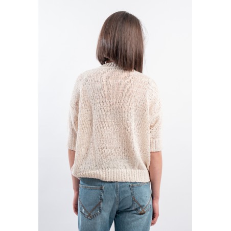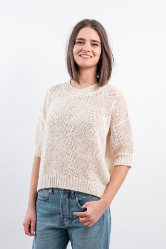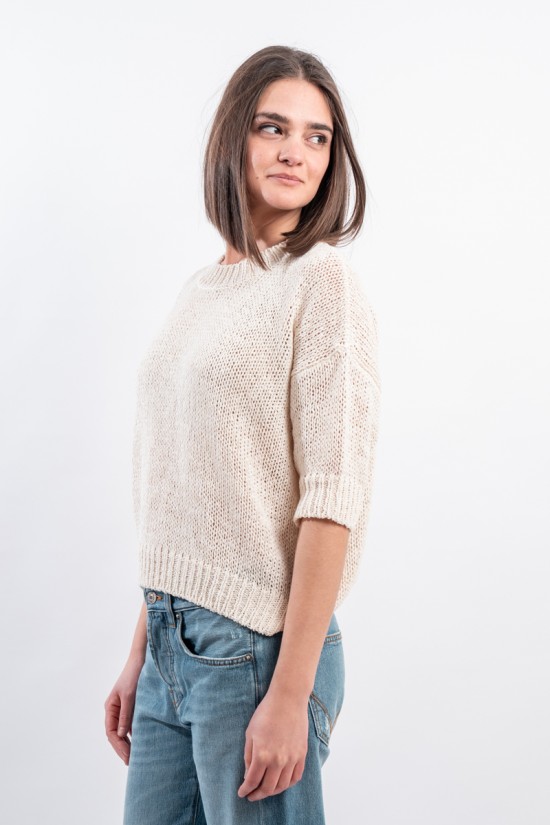 Crewneck sweater made of organic cotton by ROBERTO COLLINA, Made in Italy. Enriched by ribbed knitting on the collar, cuffs and hem. The boxy cut and dropped sleeve combined with an elegant workmanship make it comfortable and versatile. Ideal for adding a touch of romance to your everyday outfit.