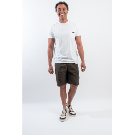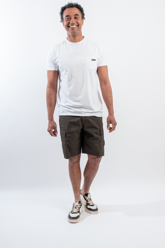 Bermuda shorts made of lightweight stretch cotton canvas by STONE ISLAND. Practical and functional, it is equipped with multiple pockets with zip or snap closure. The color is bright and full thanks to the garment dyeing technique. Comfortable and lightweight, it is a must-have for every summer season.