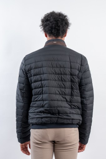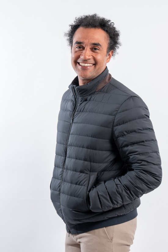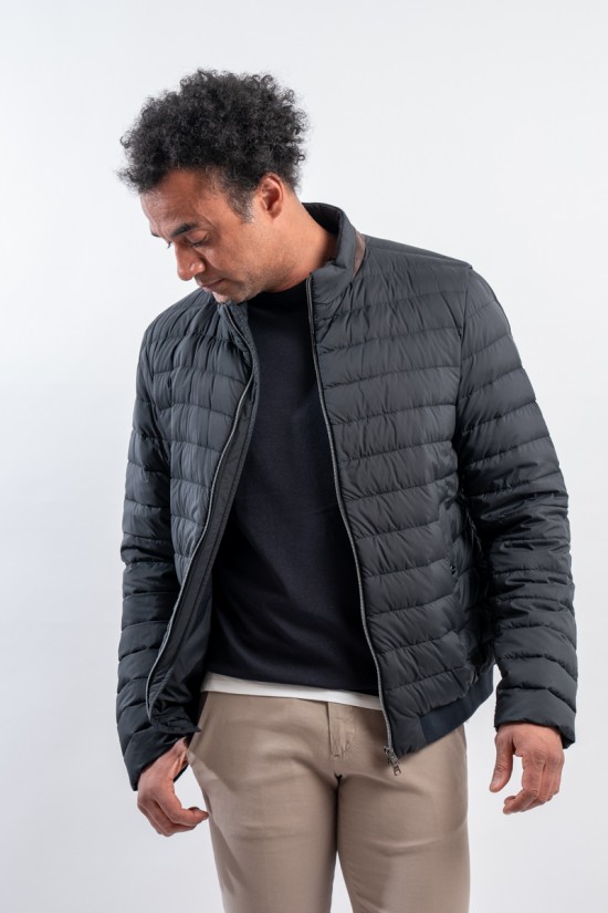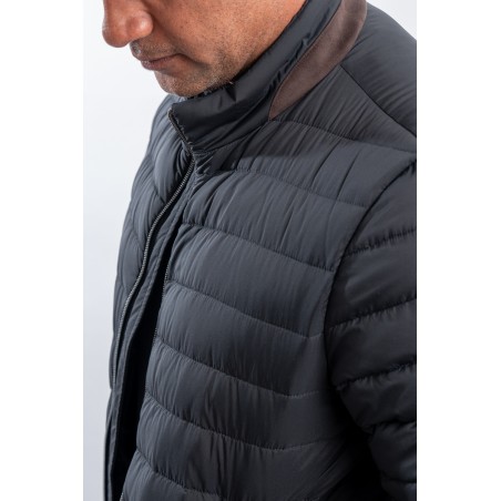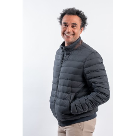 Down jacket in recycled nylon microfiber combined with a lightweight two-layer scuba fabric. Made with one of the most innovative padding techniques, it is very light and soft to the touch. The linear design is enriched by the classic boudine quilting and the two-way zip closure. The suede-effect detail applied to the collar adds character to an essential look, making it contemporary and attractive. Waterproof and comfortable, it is perfect for facing the mid-season in the best possible way.