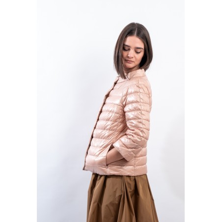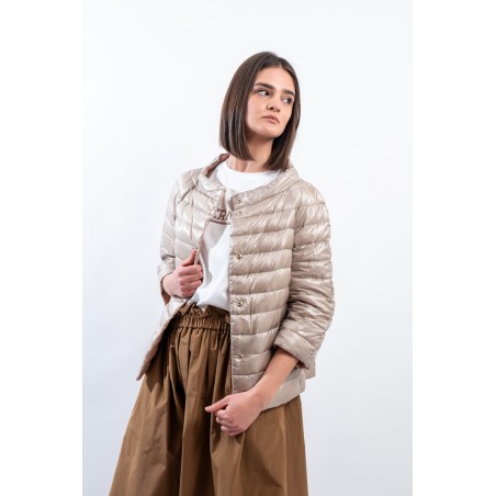 Hood with 3/4 sleeves made of ultralight nylon finished with a crater neckline. The classic boudin quilting and A-line cut give the garment a bold, timeless elegance. Reversible, it adapts perfectly to your every outfit. HERNO has always been a symbol of art in the packaging and this model fully represents its identity.