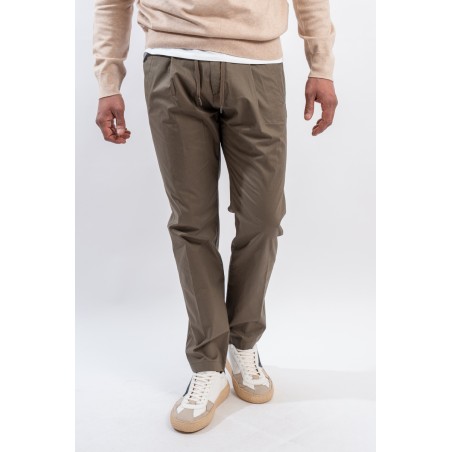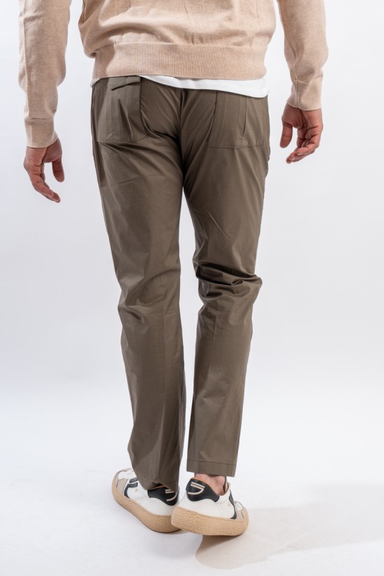 Trousers made of stretch cotton and equipped with multiple pockets. Two at the back and two on the sides. Casual look with a strong soul given by the particular rippled effect. Comfortable and lightweight, it has a drawstring waist to adapt perfectly to every need.