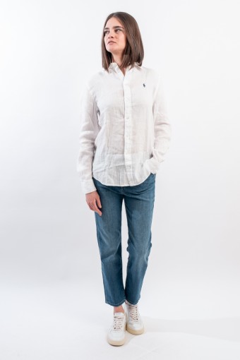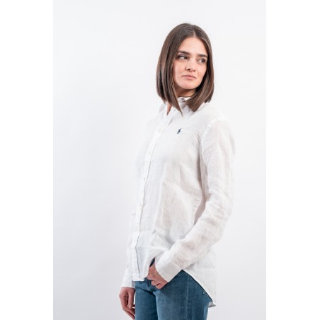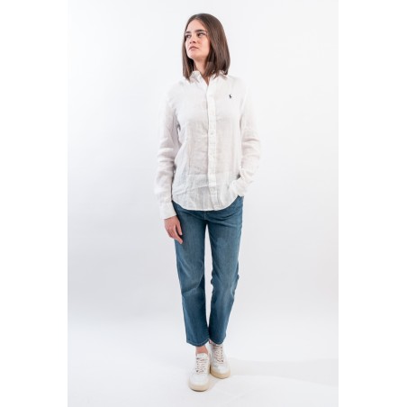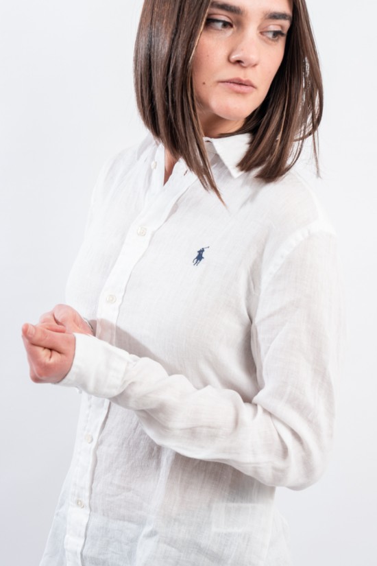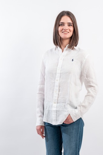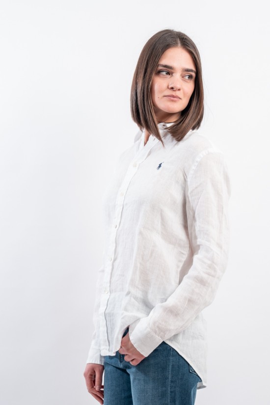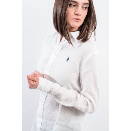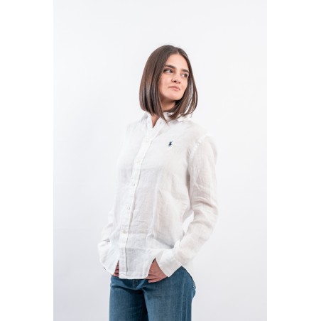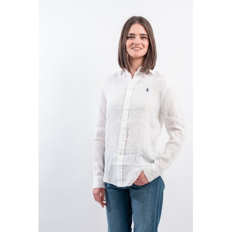 Fresh and light, the iconic POLO RALPH LAUREN shirt made of pure linen. Classic fit, it is characterized by the front closure with visible mother-of-pearl buttons and the iconic pony embroidered in relief on the chest.