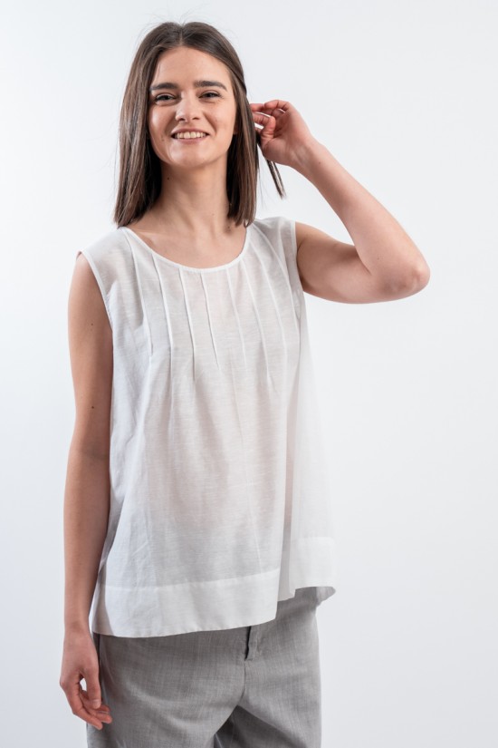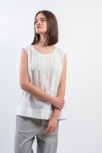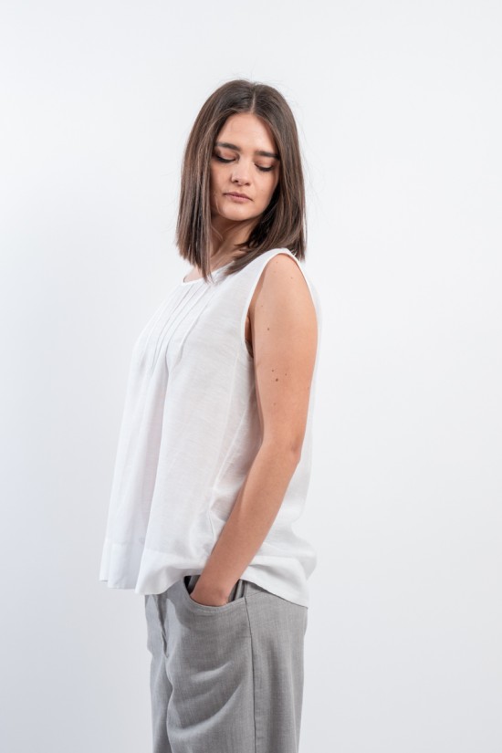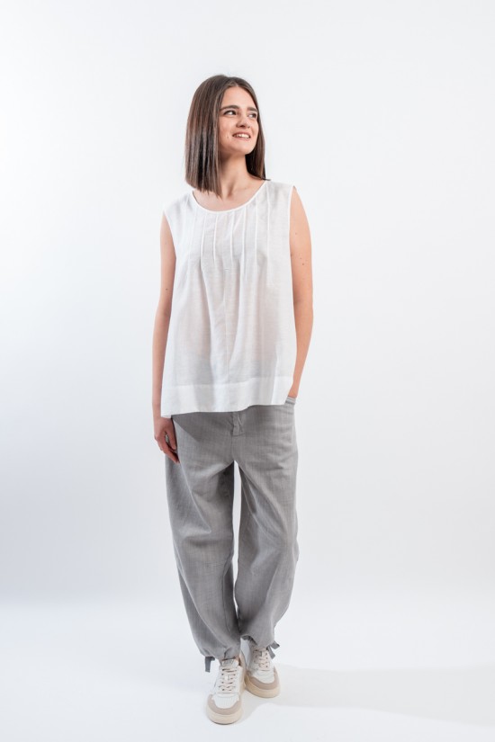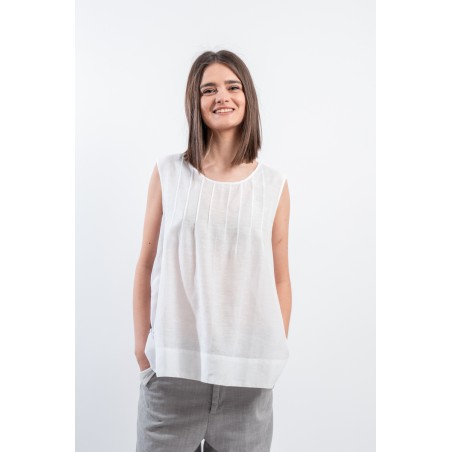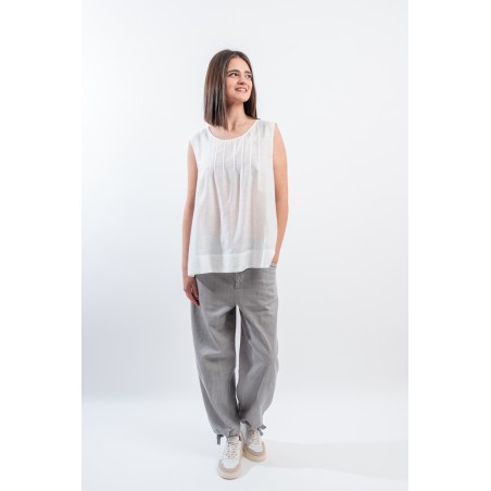 The linen blend top by ALESSIA SANTI stands out for its lightness and breathability, perfect for wearing on hot summer days. It features a boat neckline that enhances the décolleté and details with logoed buttons on the back that give a touch of refinement to the garment. The minimal and elegant design makes it ideal for a chic and everyday look, easy to combine with different garments. Versatile and practical, this top is a must-have for a refined summer wardrobe, offering comfort without sacrificing style.
