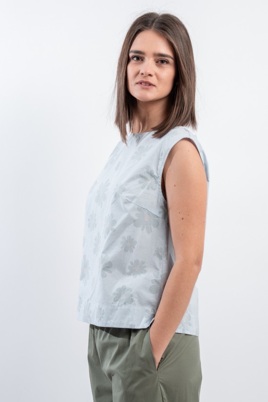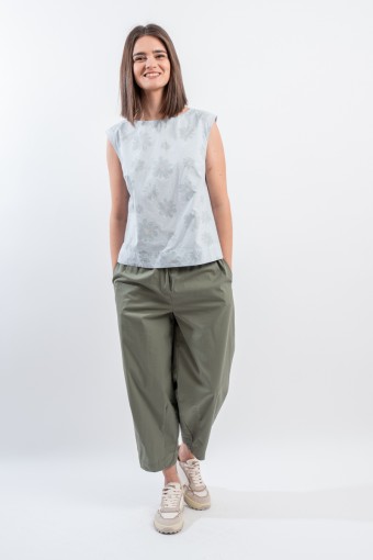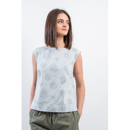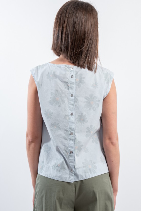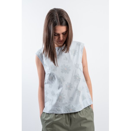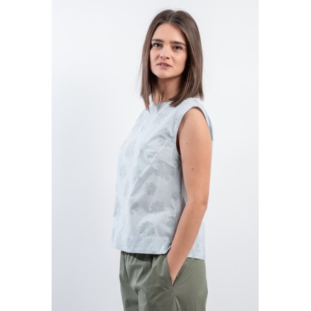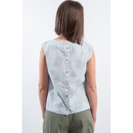 With a fresh and light texture ideal for hot days, the shirt by ALESSIA SANTI presents itself. Embellished with a refined tone-on-tone floral motif that gives a delicate and feminine touch. The buttons at the back add a distinctive detail, while the relaxed fit ensures comfort and versatility. Made in Italy!