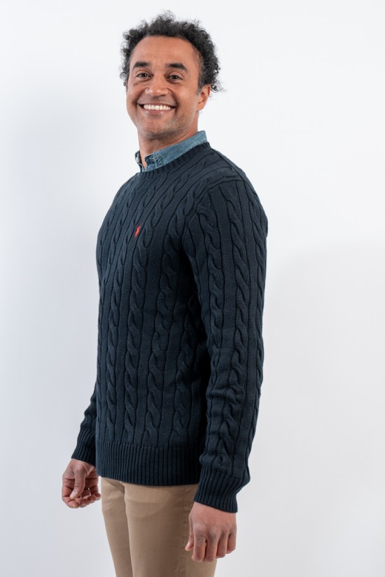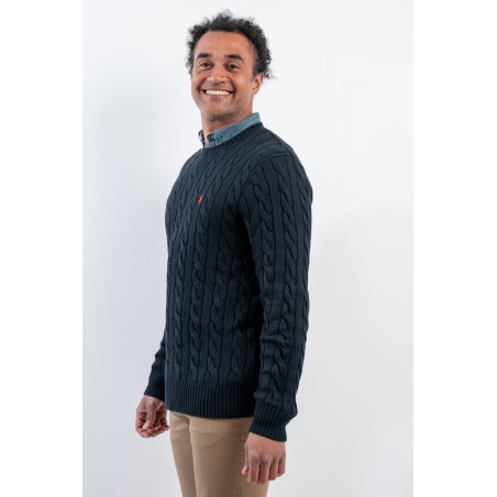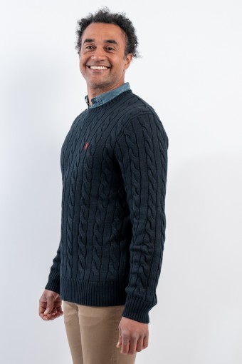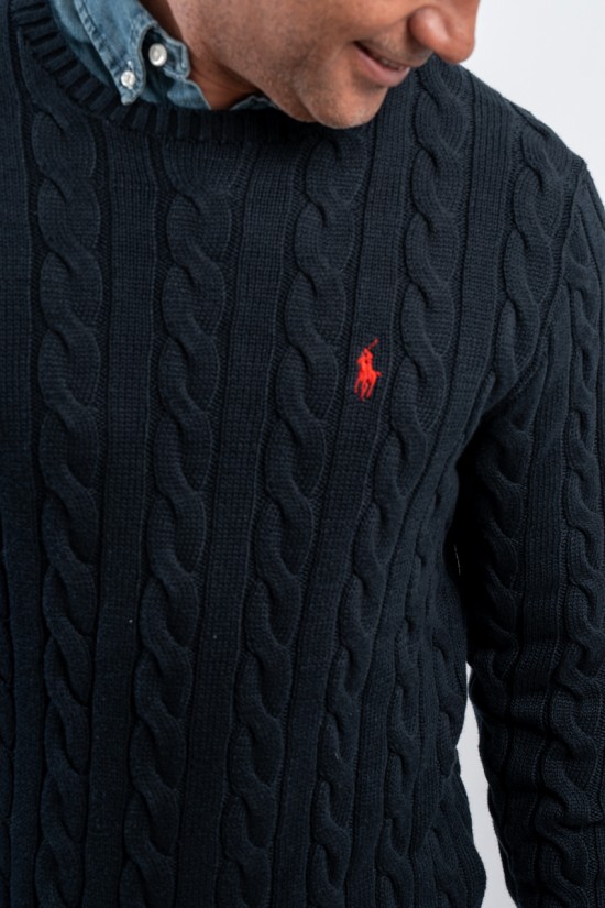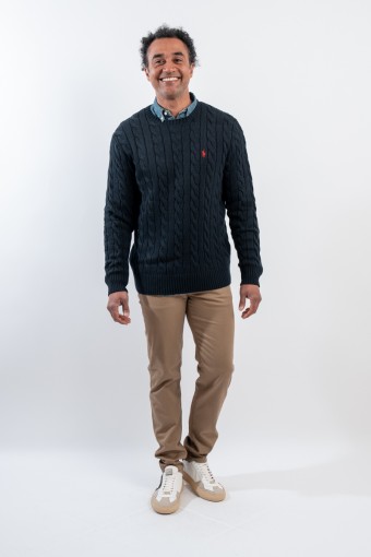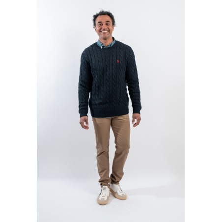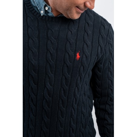 Soft signature POLO RALPH LAUREN sweater in cotton, with a textured cable pattern and classic pony embroidered on the chest. Featuring a crew neck, long sleeves with ribbed cuffs and a ribbed hem, it offers comfort and style. Its Regular-Fit cut makes it ideal for a casual and refined look, perfect for any occasion. A versatile and quality garment, which combines elegance and practicality with the prestige of the RALPH LAUREN brand.