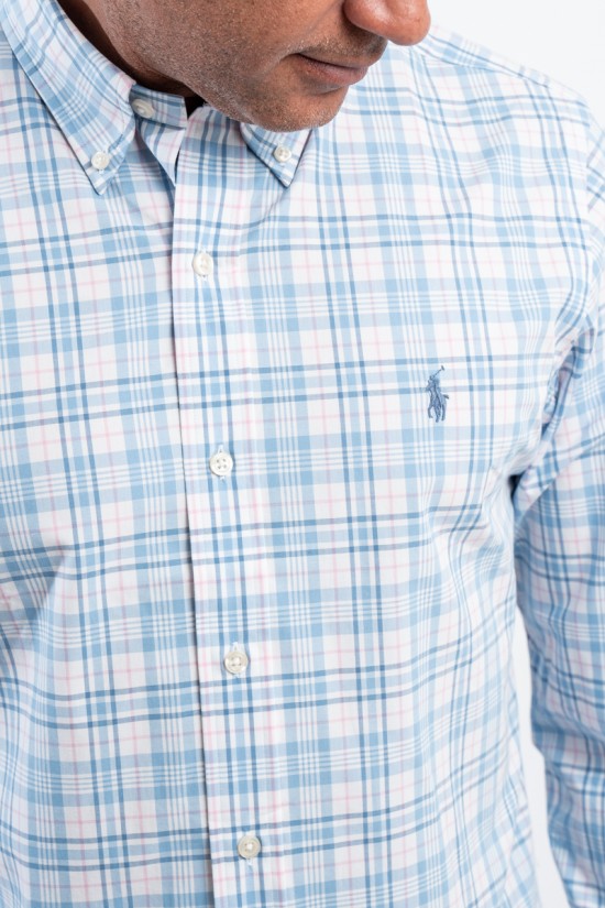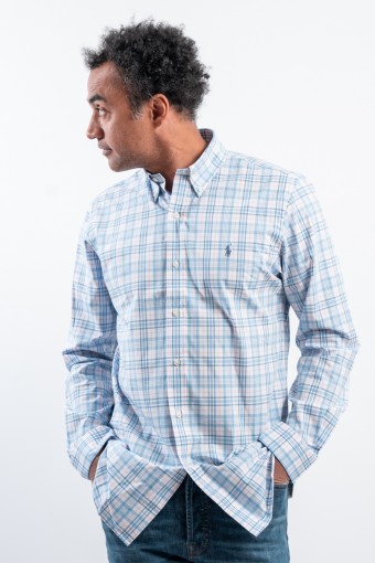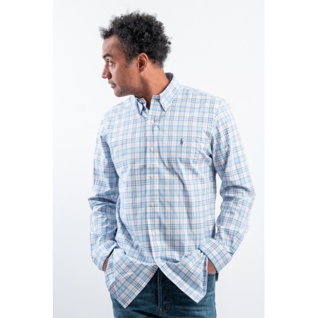 Polo Ralph Lauren shirt made of cotton blend. It features a custom-fit cut, button-down collar and long sleeves with cuffs. The back yoke with box pleats ensures comfort and freedom of movement. The plaid pattern and the embroidered pony on the left side of the chest add a touch of elegant and exclusive style. Perfect for a refined and casual look, it combines quality and sophistication in every detail.