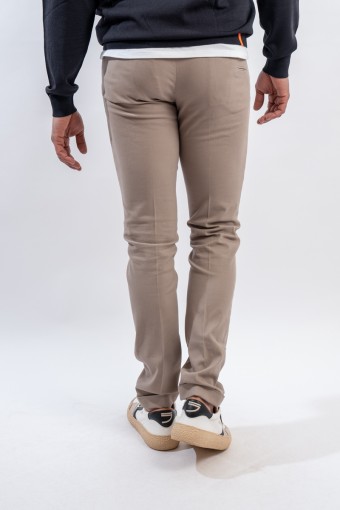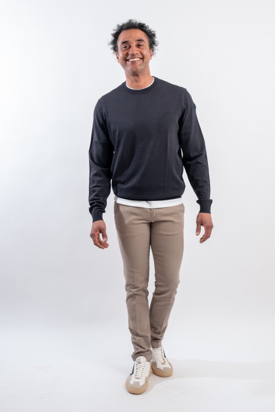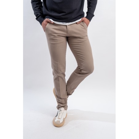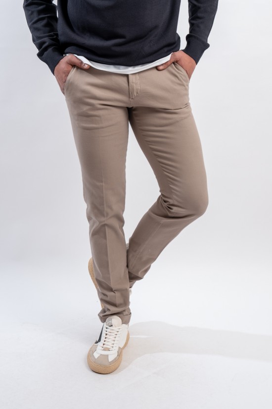 The BRIGLIA trousers are a stylish and versatile garment, made of a stretch cotton blend for a slim fit that flatters the silhouette. The honeycomb workmanship adds originality to the design. It has front America pockets and back pockets with buttons, combining functionality and aesthetics. Made in Italy, it represents a perfect balance between quality craftsmanship and modern trends, ideal for those looking for a well-kept and refined look suitable for different occasions.