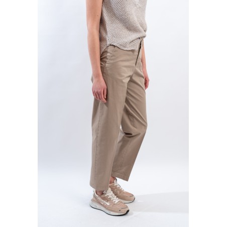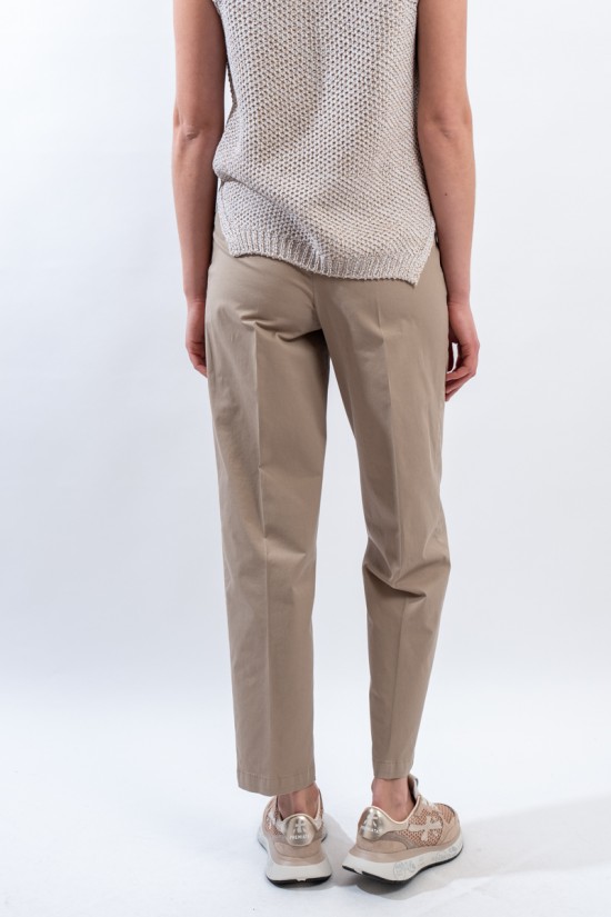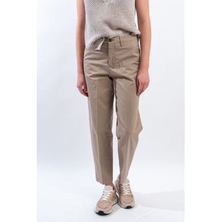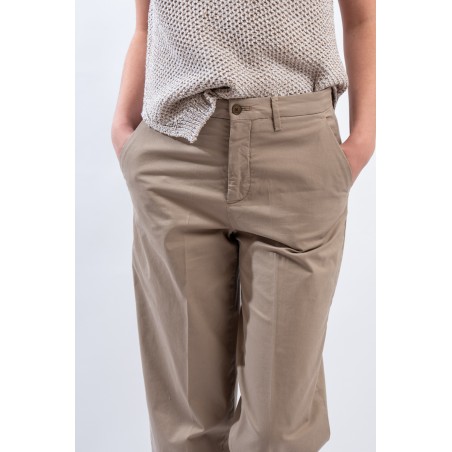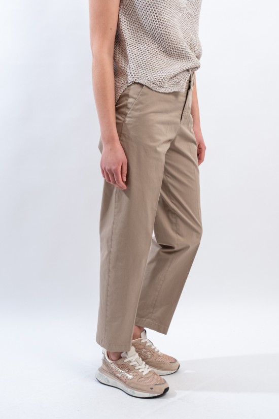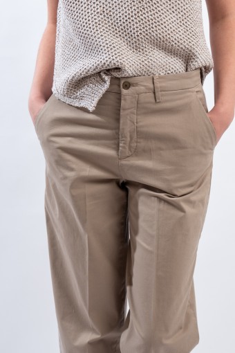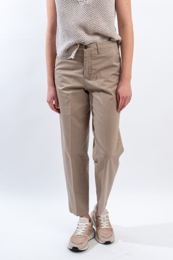 Chino trousers with relaxed fit and straight hem. Made of soft stretch gabardine. Slanted pockets on the front and welt pockets on the back. Made in Italy.