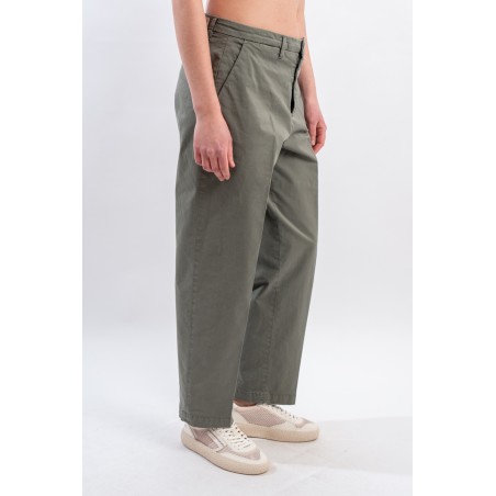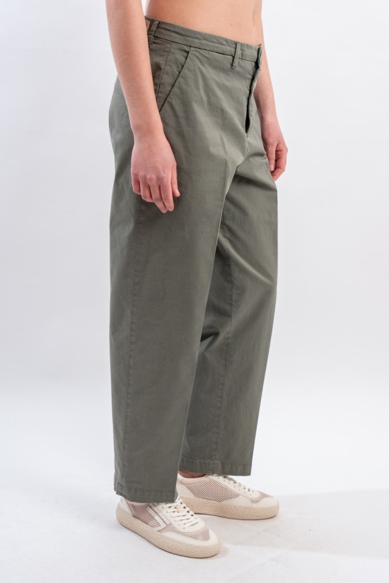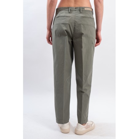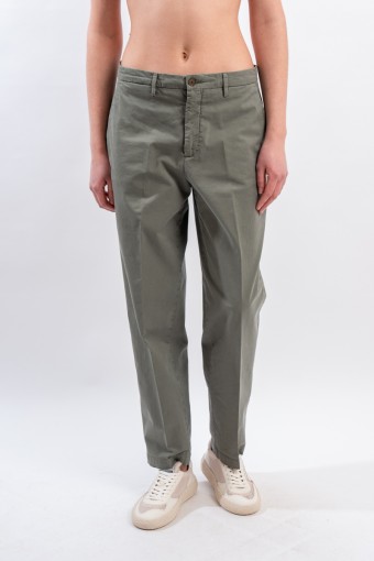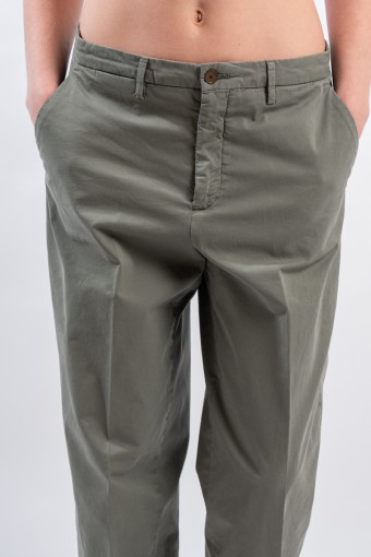 Chino trousers with relaxed fit and straight hem. Made of soft stretch gabardine. Slanted pockets on the front and welt pockets on the back. Made in Italy.