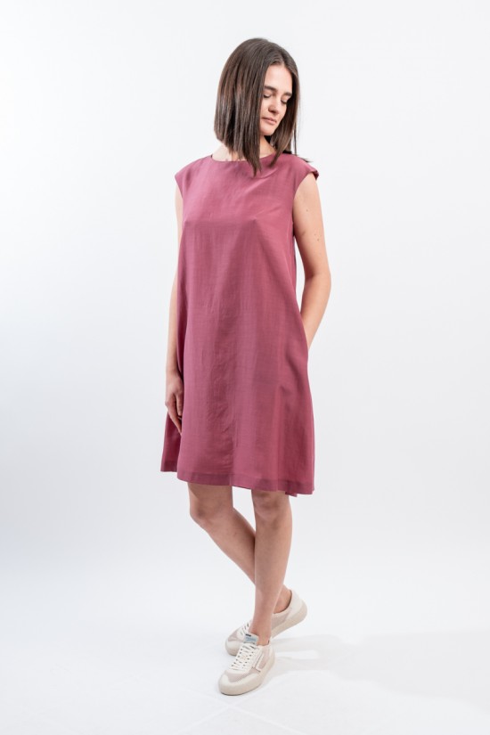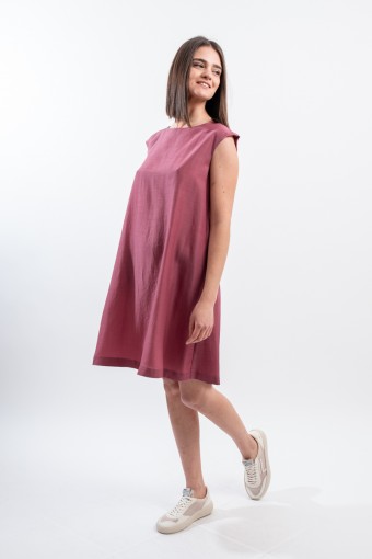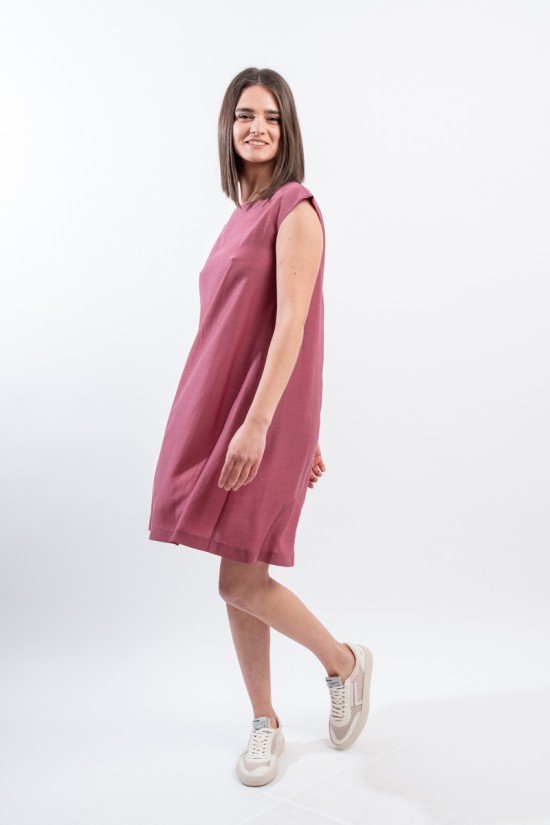 A-neck dress with cap sleeves. Short, fresh and light model to wear with ease on any occasion.