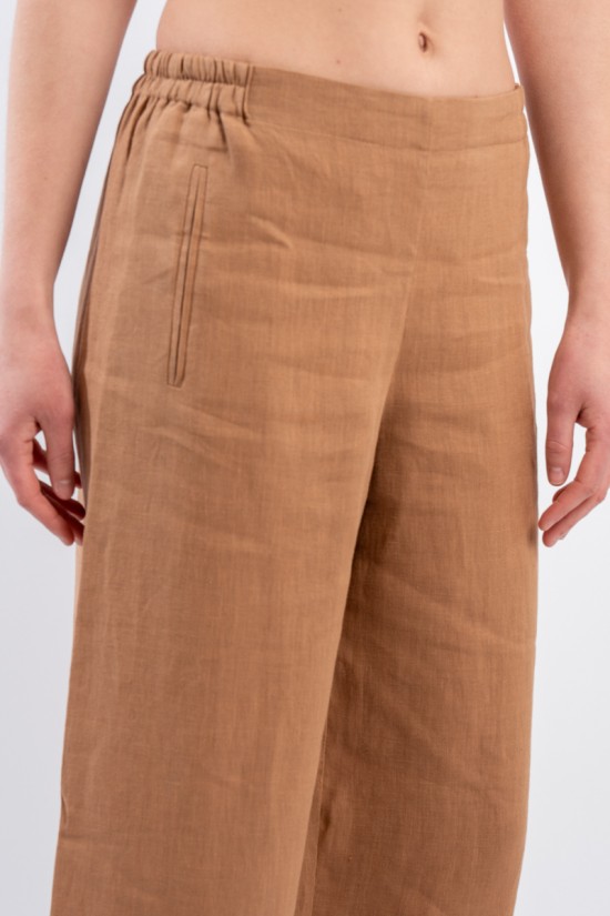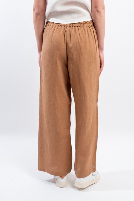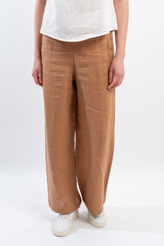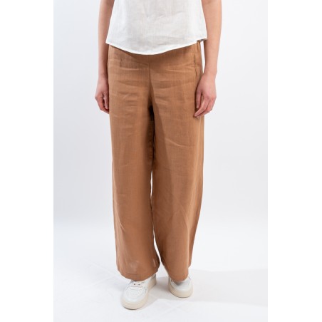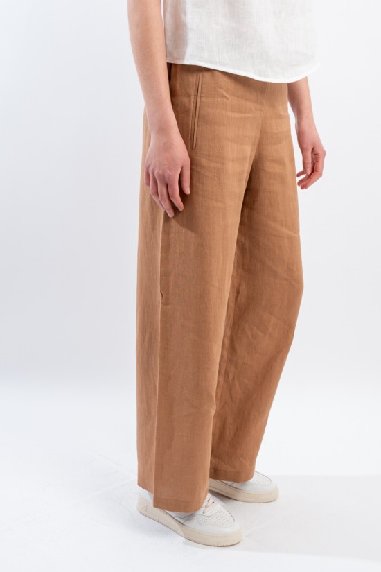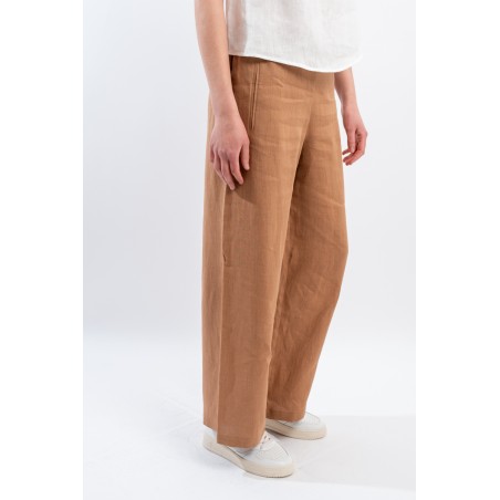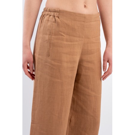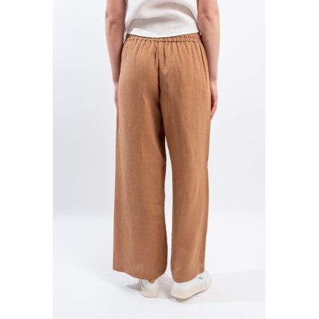 The iconic trousers of the NIU line are particularly appreciated for their fluid line suitable for dressing every woman. The elasticated waist insert on the back makes it extremely comfortable. Made of linen, it is soft to the touch, fresh and comfortable. Straight leg and welt pockets on the front.