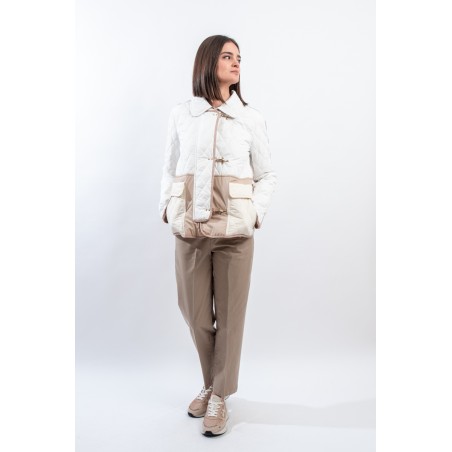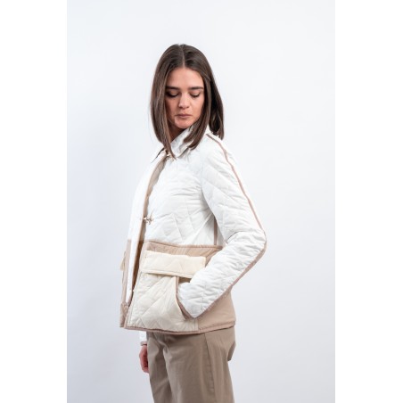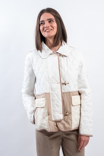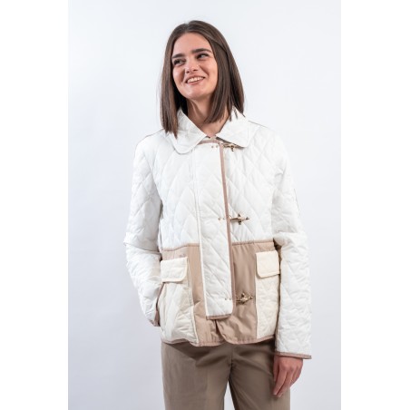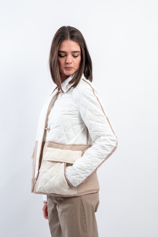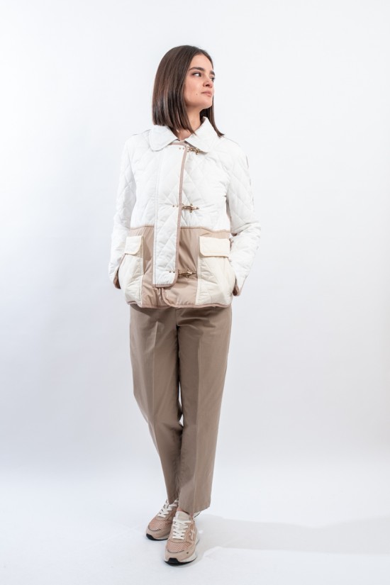 Iconic jacket FAY 3 hooks in quilted and multicolor technical fabric. Soft wadding padding perfect for the intermediate seasons. Featuring refined nylon piping and patch pockets. The central closure is embellished and perfected by the iconic 3 hooks and hidden snap buttons. Made in Italy.