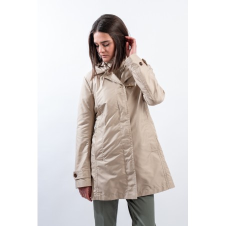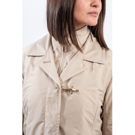 Iconic double-front Morning Coat in its lightest version. Made of technical poplin with water-repellent treatment, unlined and windproof. Equipped with side pockets, it features a zip and button closure hidden by the flap, an iconic FAY hook on the chest.