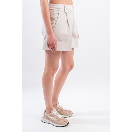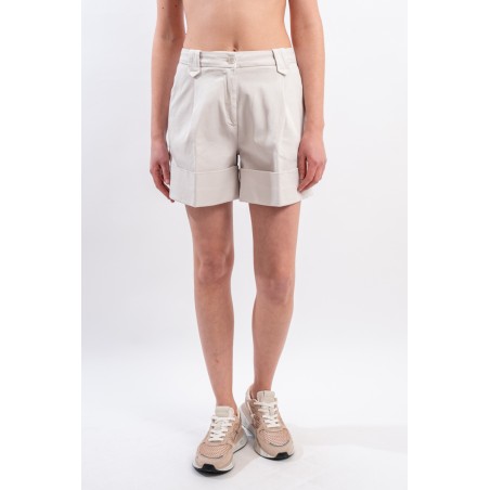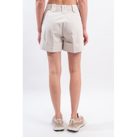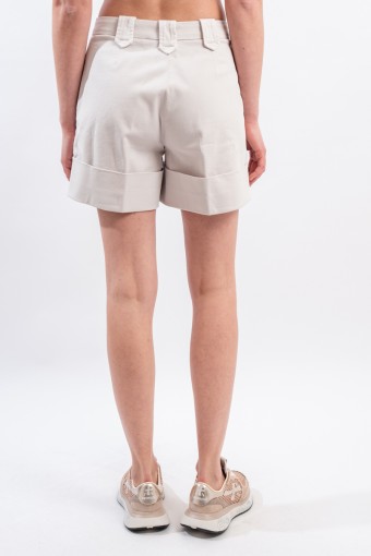 Bermuda shorts in stretch cotton gabardine with high turn-up at the bottom. Regular waist and soft leg, embellished with pleats on the front. Casual and jaunty, but at the same time refined!