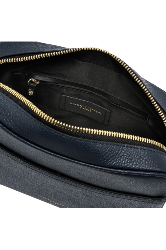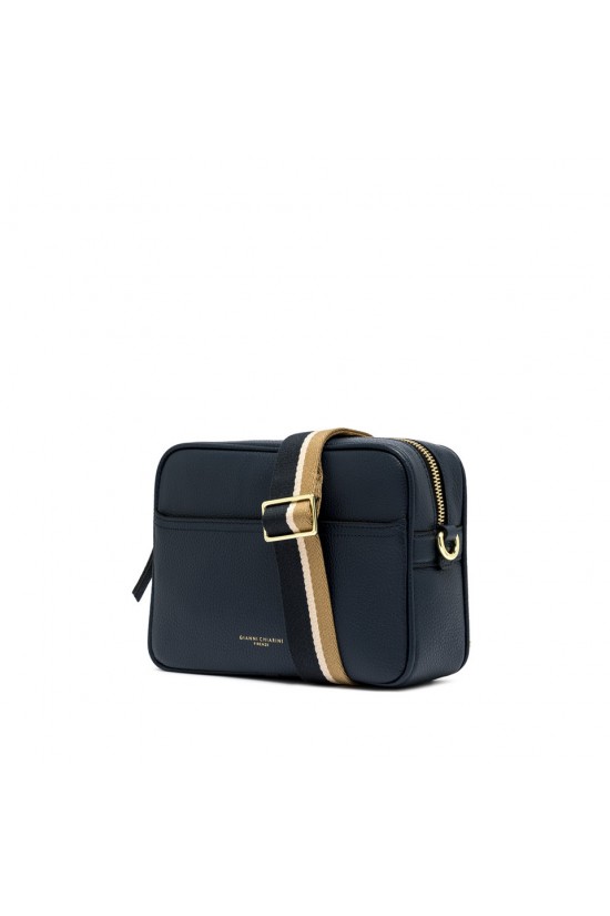 The Nina bag by GIANNI CHIARINI FIRENZE is an elegant and functional accessory. Crafted from premium pebbled leather, it features a boxy silhouette that combines style and practicality. Its main compartment, secure thanks to the zip closure, is flanked by a flat pocket on the front, ideal for storing small items. The woven fabric shoulder strap allows for versatile use, perfect for any occasion. It is the ideal complement for those looking for a balance between fashion and comfort.