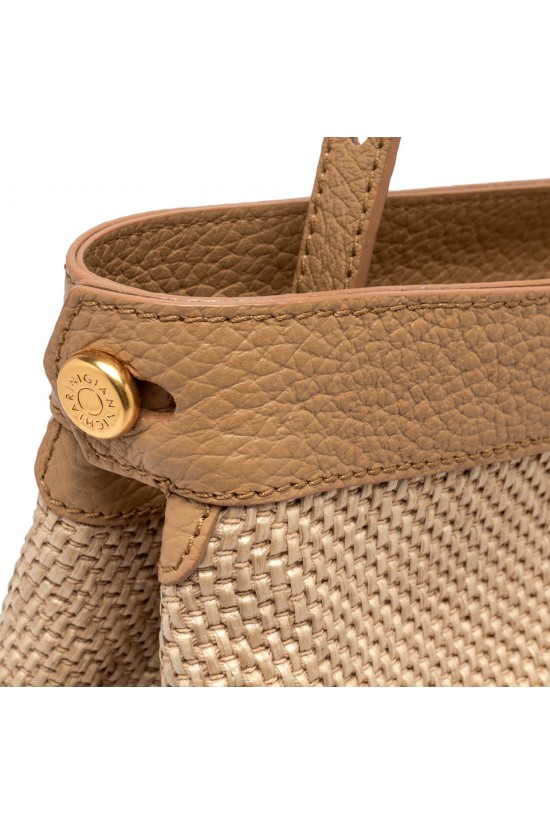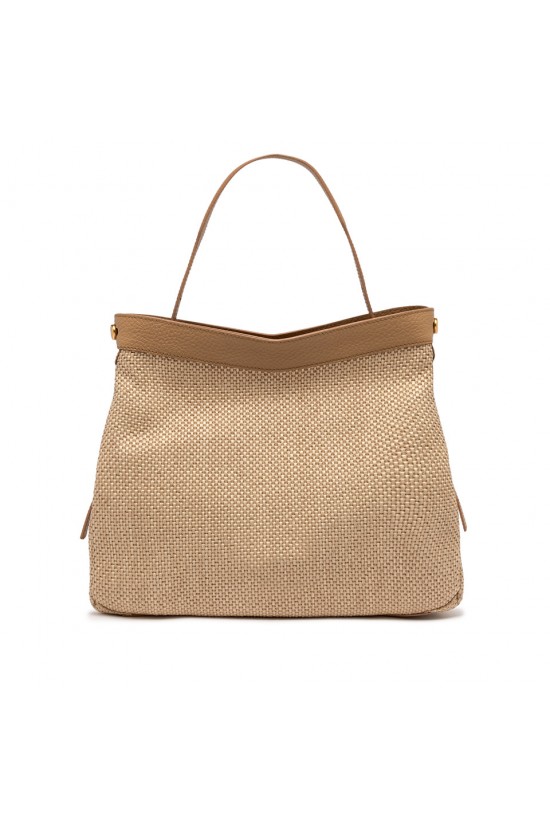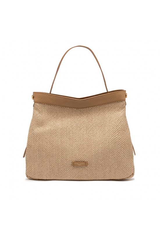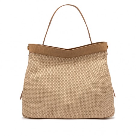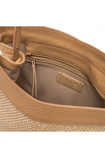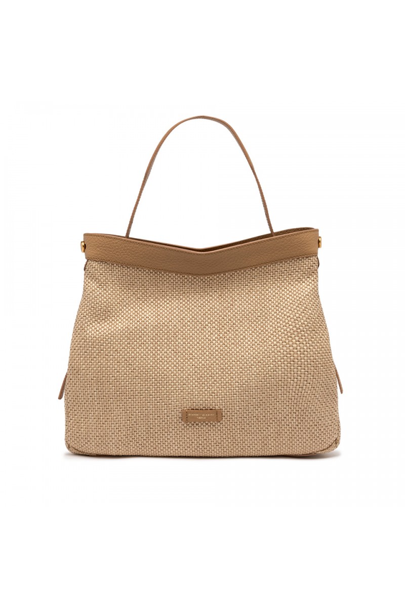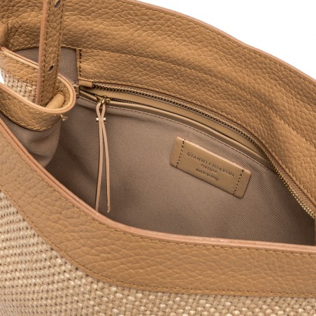 The Ottavia bag by GIANNI CHIARINI FIRENZE is an elegant and practical accessory, made of fine woven straw fabric. Its capacity makes it ideal for everyday use, while the adjustable handle allows you to carry it comfortably by hand. The design is enhanced by a large logoed cufflink, which gives a distinctive touch of style. The top zip closure ensures security and practicality, making this bag perfect for any occasion, from work to leisure. A must-have for every fashionista!