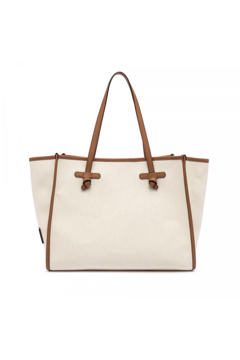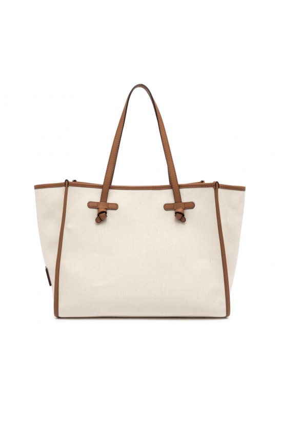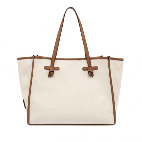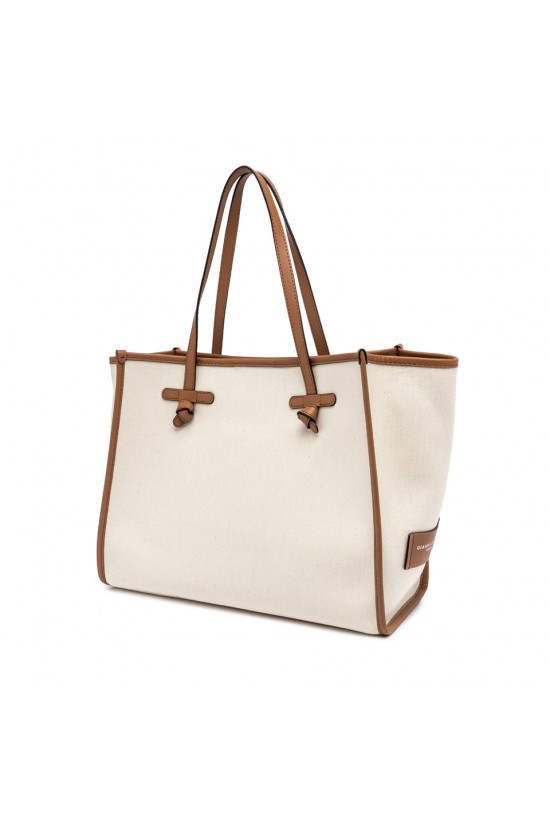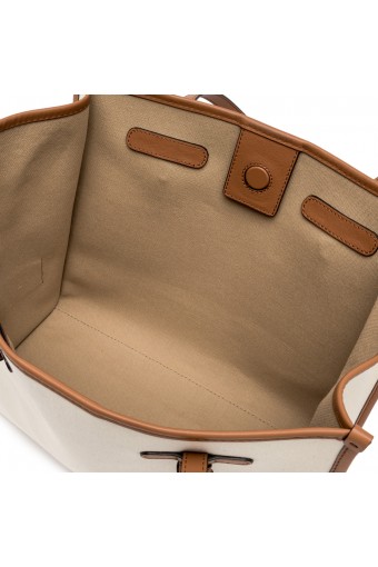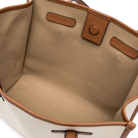 The Marcella tote bag designed by GIANNI CHIARINI FIRENZE is an elegant bag made of two-tone canvas, a symbol of timeless style. Its minimalist design is embellished with leather profiles, which enhance its refinement. Equipped with leather handles and a practical magnetic closure, it is perfect for everyday use. The contrasting inner lining adds a touch of originality, while the leather clutch, coordinated with the trim, makes it even more exclusive. A versatile and chic accessory for any occasion.