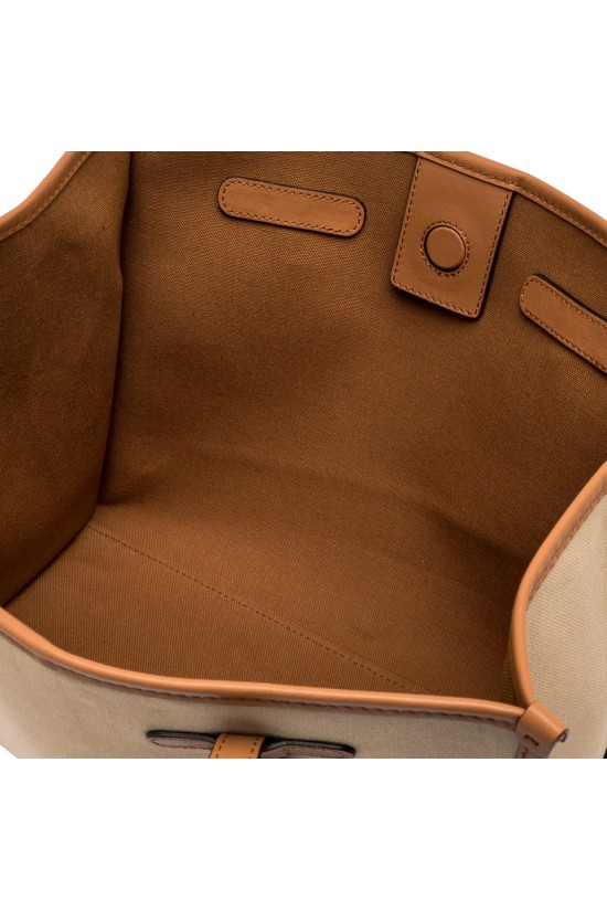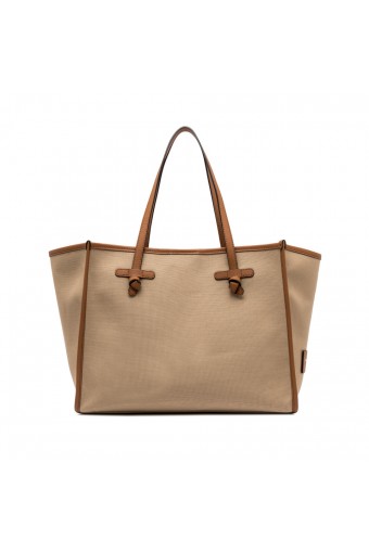 The Marcella tote bag designed by GIANNI CHIARINI FIRENZE is an elegant bag made of two-tone canvas, a symbol of timeless style. Its minimalist design is embellished with leather profiles, which enhance its refinement. Equipped with leather handles and a practical magnetic closure, it is perfect for everyday use. The contrasting inner lining adds a touch of originality, while the leather clutch, coordinated with the trim, makes it even more exclusive. A versatile and chic accessory for any occasion.