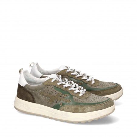 The new Nous 7221 running cassette by PREMIATA represents the culmination of research and innovation, offering a neat and functional design that fits perfectly with the needs of athletes. It has essential lines and high quality materials. Made of light green perforated suede with leather inserts. Its lightness and excellent cushioning ensure long-lasting comfort, while the non-slip sole offers superior traction. A perfect balance between style and functionality, ideal for those looking for the best in their performance.