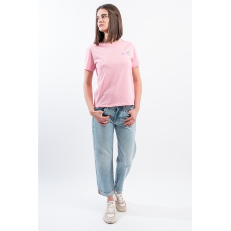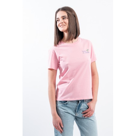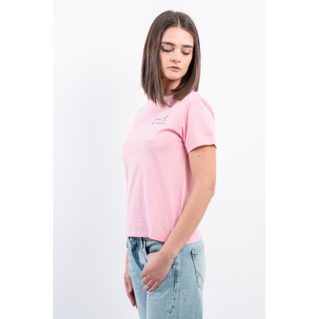 Crewneck T-shirt made of 100% cotton yarn, short sleeves. Embellished with "Remote work" embroidery on the chest. With a versatile and glamorous style, perfect for any occasion of use, it is an original garment, like the wearer!