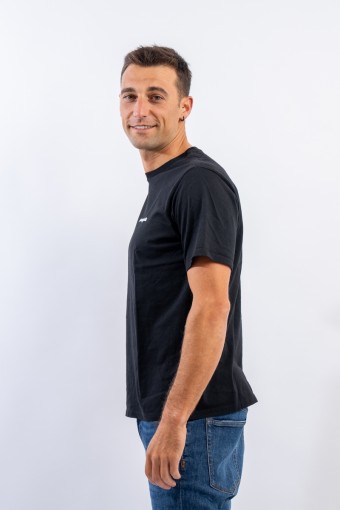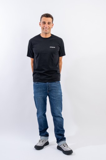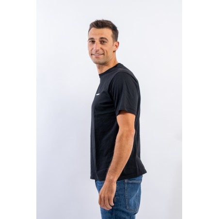 Short-sleeved T-shirt made with 100% recycled materials, obtained using 4.8 plastic bottles and 136 grams of cotton textile waste. This method also saves 96% of water and creates 45% less CO₂ than the production of a similar garment in traditional cotton. With Fair Trade Certified stitching.