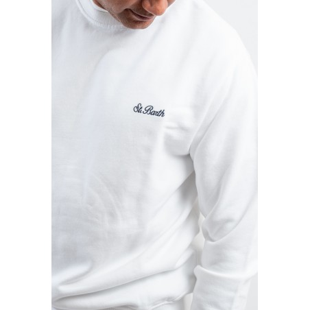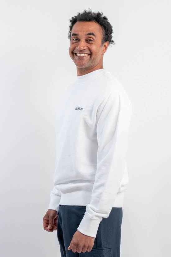 Saint Baarth crewneck sweatshirt made of brushed cotton. Featuring "Saint Barth" embroidery on the front chest. Ribbed crew neck, polysini and hem. Regular fit. Institutional flag on the back of the neck.