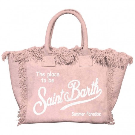 Versatile and roomy solid color bag. Enriched with fringes along the edges, it is made of sturdy cotton canvas, with practical and resistant handles, zip closure and two service pockets. Ideal for any summer day!