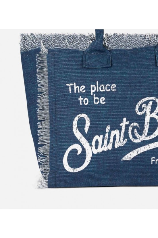 Versatile and roomy solid color bag. Enriched with fringes along the edges, it is made of sturdy cotton canvas, with practical and resistant handles, zip closure and two service pockets. Ideal for any summer day!