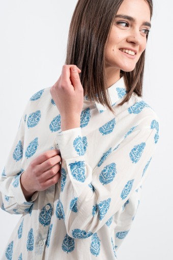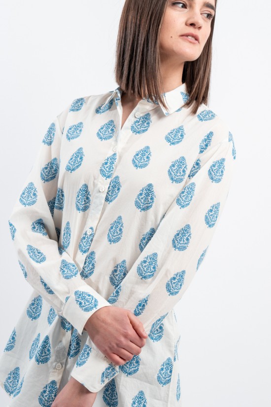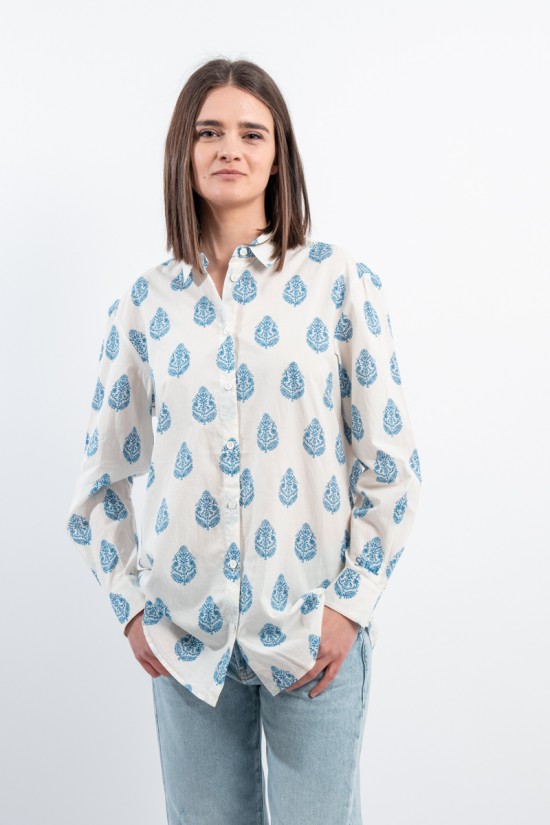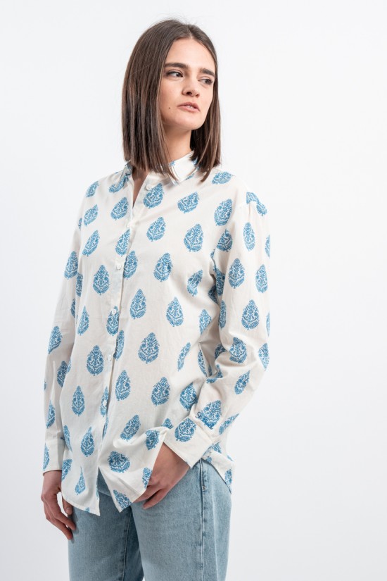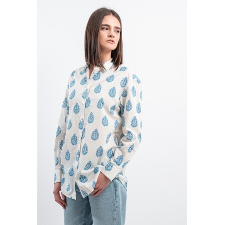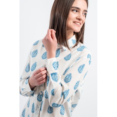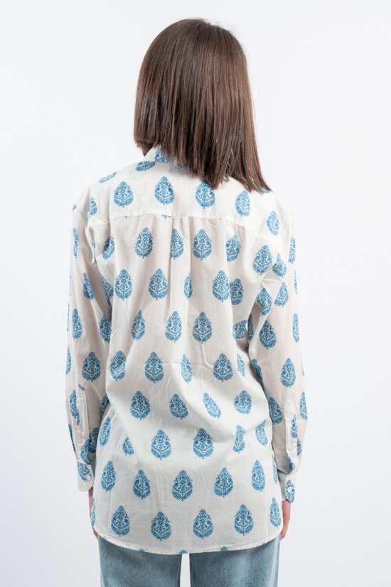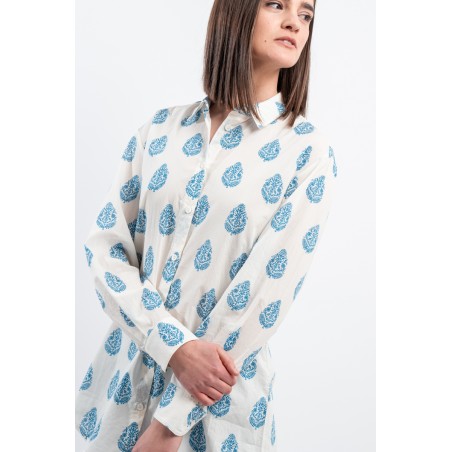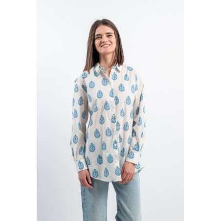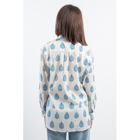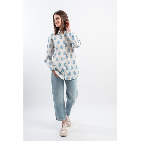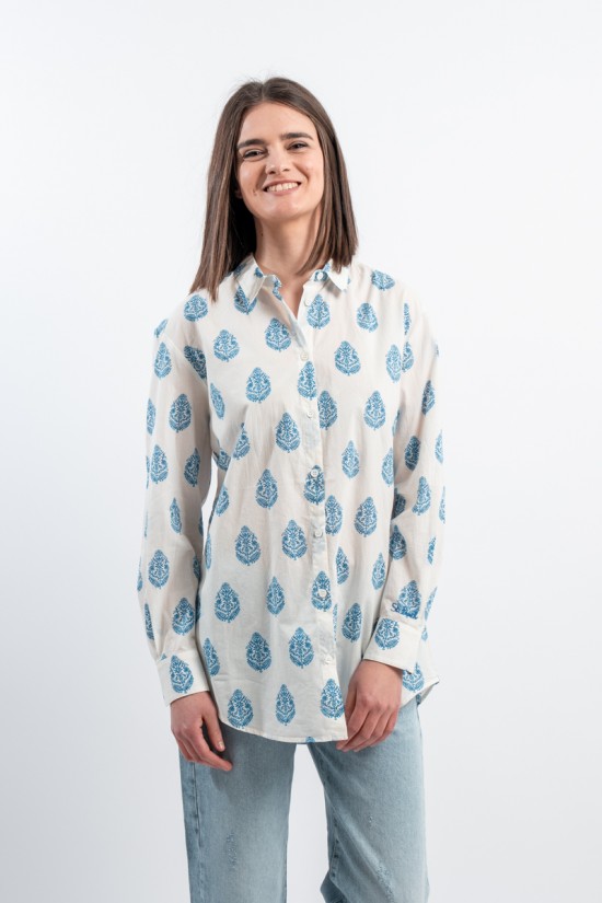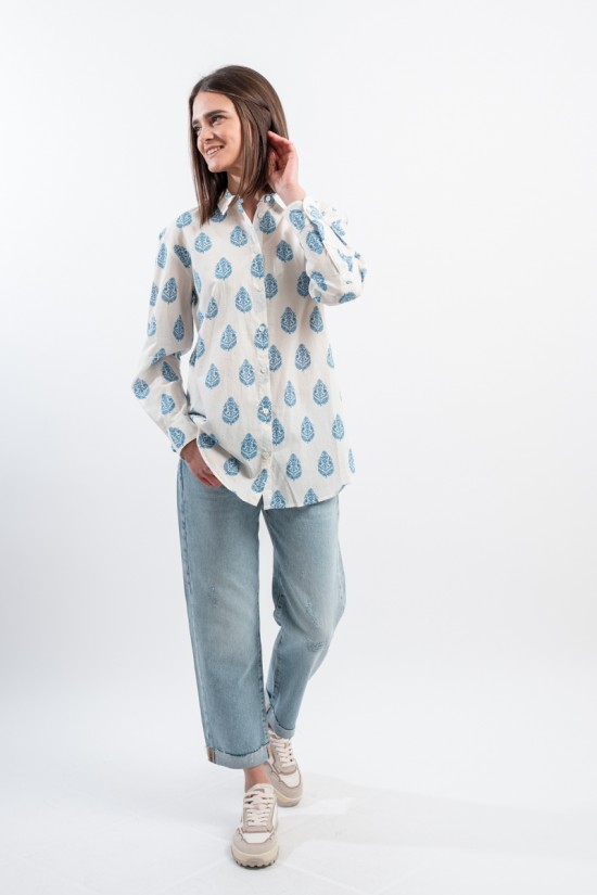 MC2 SAINT BARTH shirt made of 100% cotton and only with pure cotton fibers capable of giving a unique feeling of freshness and softness on the body. Model with floral pattern with blue tones, long sleeves and embossed Saint Barth embroidery on the back. Oversized fit.