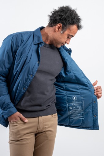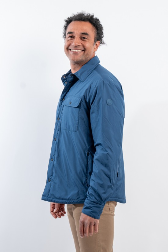 The Stellan jacket features a hybrid and versatile silhouette that is ideal for everyday layering. Made of recycled polyester, it combines style and sustainability. The design includes a flap pocket on the chest, a pointed collar and rubberized snap buttons that add a touch of practicality and style. The included dust bag allows you to easily carry it wherever you go, making it perfect for any occasion. A functional, eco-friendly and trendy garment, which adapts to the needs of those looking for comfort and sustainable style.