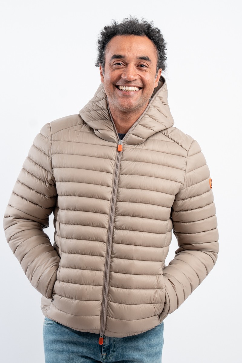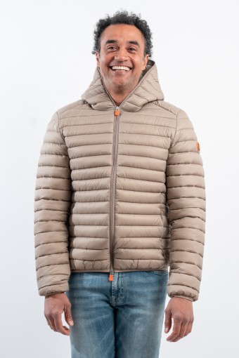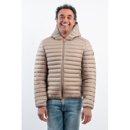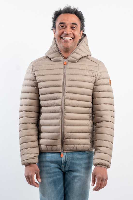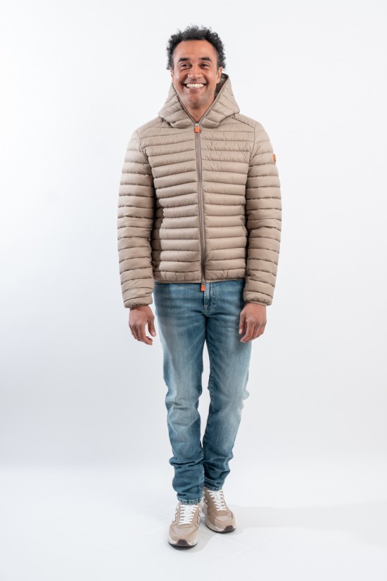 Eco-friendly jacket by SAVE THE DUCK, padded with soft and lightweight Plumtech, ideal for mid-season. Breathable and water-repellent, it offers comfort and protection. Equipped with a fixed hood and full-zip closure with double slider and logoed zips, it guarantees practicality and style. Classic boudin quilting adds elegance, while elasticated cuffs and hems ensure a perfect fit. Side pockets with flush zippers are functional. Regular fit and included bag make this jacket practical and ideal for everyday use.