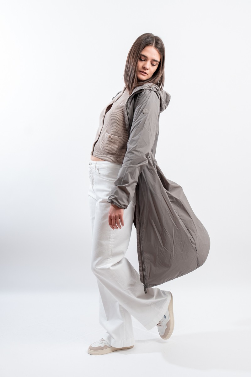 Lightweight and practical, the long Cloud raincoat by SAVE THE DUCK is ideal for any occasion. Equipped with zip closure and elasticated waistband with drawstring for a perfect fit. Elastic cuffs and an adjustable drawstring hood provide protection and comfort. The long sleeves and two zippered pockets are practical and functional. The appliqué logo and brand label add a touch of style. Perfect for facing the rain in style.