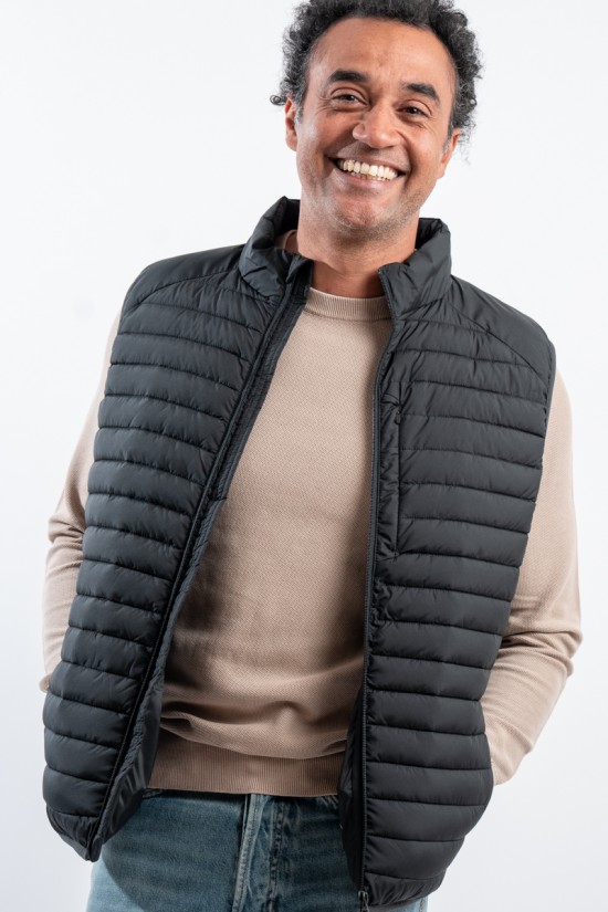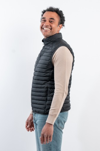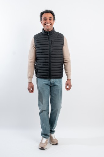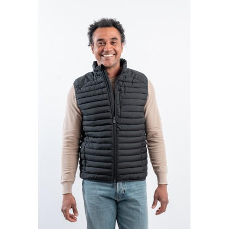 Slim-fit vest padded in soft and lightweight plumtech, ideal for everyday use. Breathable and water-repellent. Two-way full zip with log-in zip puller. Classic boudin quilting. GIRO elasticated sleeve and hem. Side and chest pockets closed with welt zip. Resealable in the practical bag supplied.