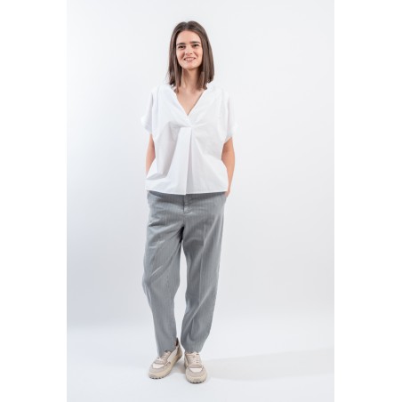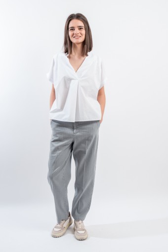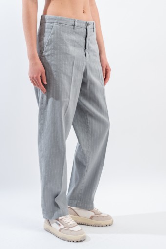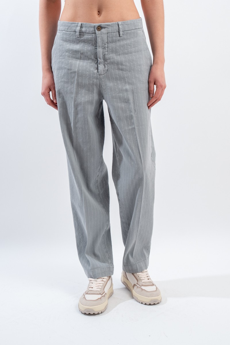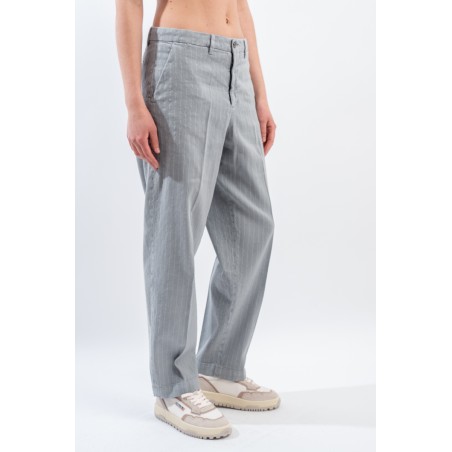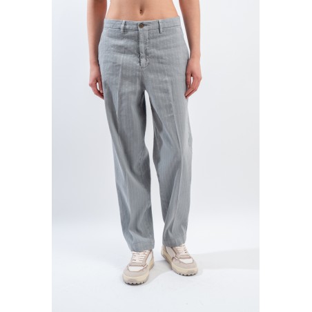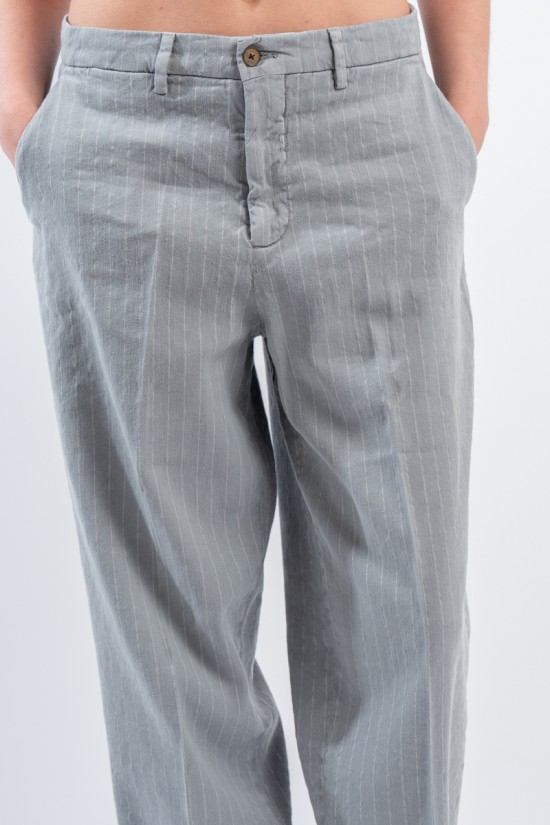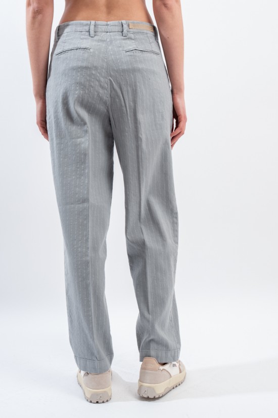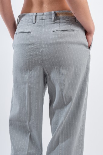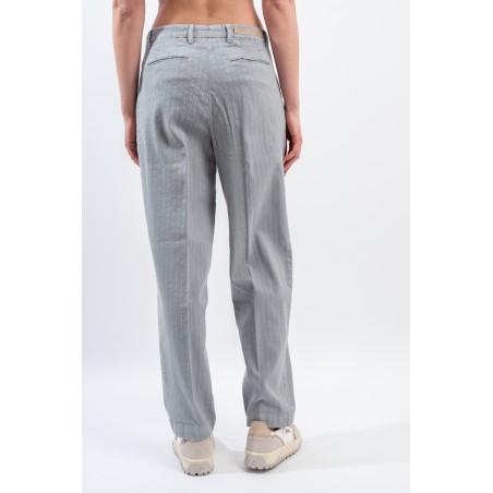 The trousers by BRIGLIA are made of linen blend. Featuring a masculine cut, it features a high waist, zip and button closure, side and back welt pockets, and a central pleat on the leg. The white stripes give an elegant and versatile touch, perfect for formal or casual occasions. The modern and adaptable design allows you to create sophisticated or more relaxed looks, offering comfort and style in any situation.