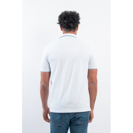 2-button short-sleeved polo shirt made of stretch piquèt. Side slits on the bottom. Ribbed collar and sleeve edge. Characterized by bright and classic colors with contrasting profiles. Embroidered logo on the chest. Slim fit.