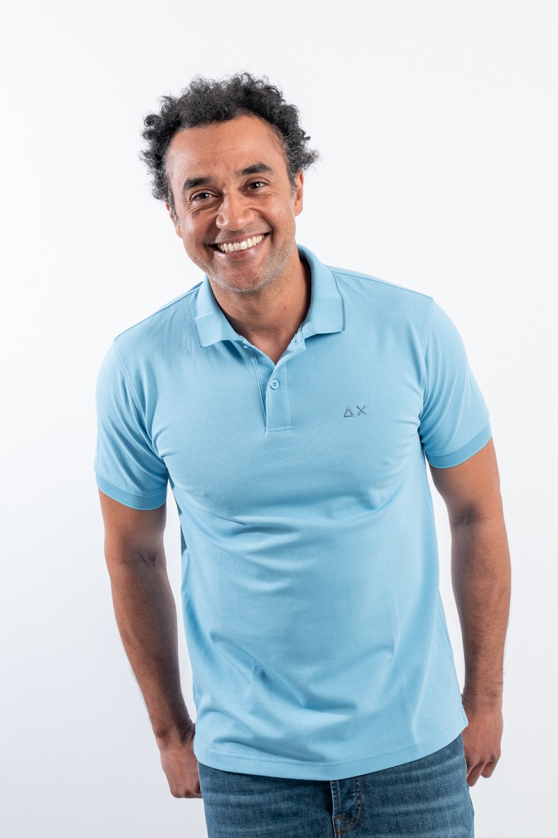 2-button short-sleeved polo shirt made of stretch piquèt. Side slits on the bottom. Ribbed collar and sleeve edge. Characterized by bright and classic colors with contrasting profiles. Embroidered logo on the chest. Slim fit.