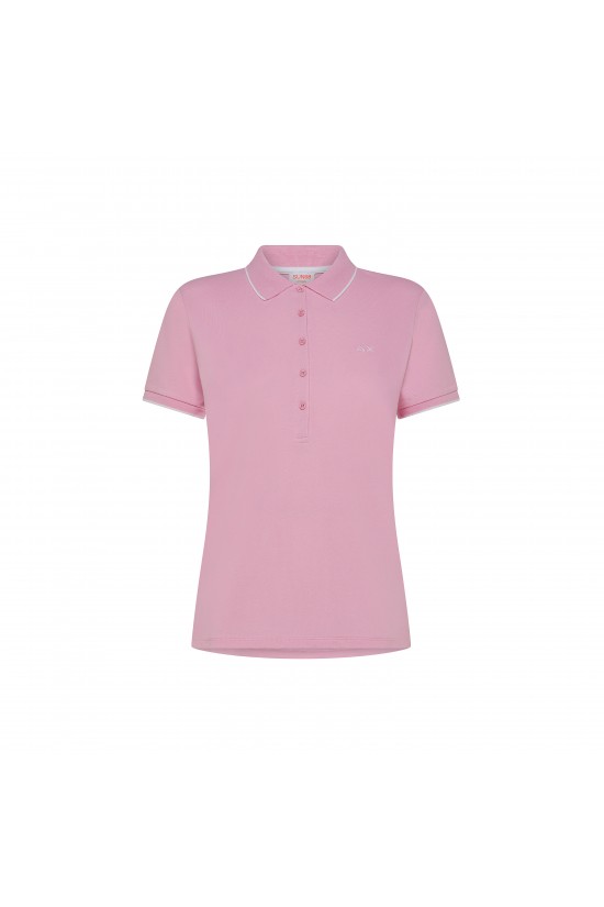 Short-sleeved polo shirt made of stretch piquèt. Side slits on the bottom. Ribbed collar and sleeve edge. Characterized by classic colors with contrasting profiles. Embroidered logo on the chest. Slim fit.