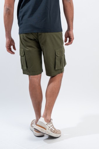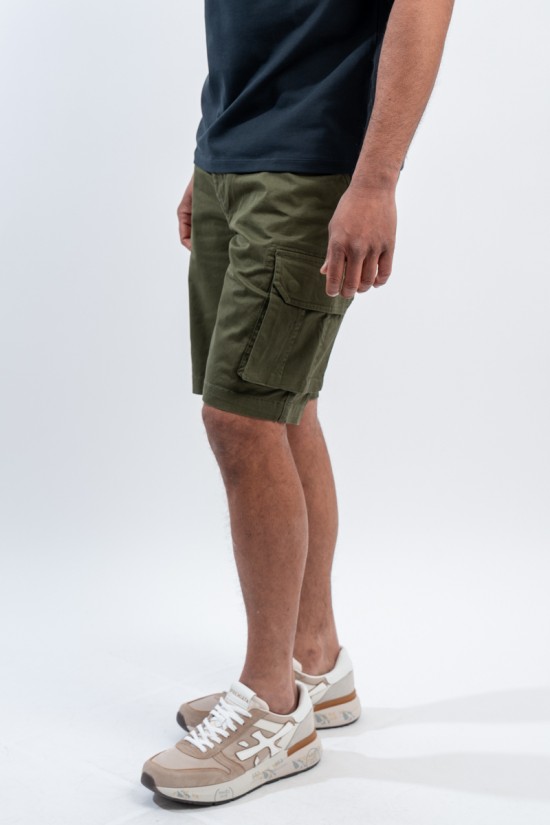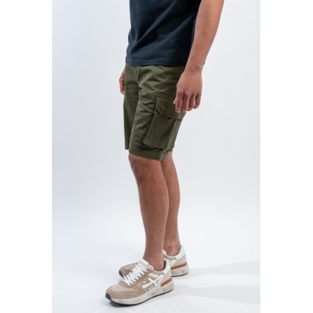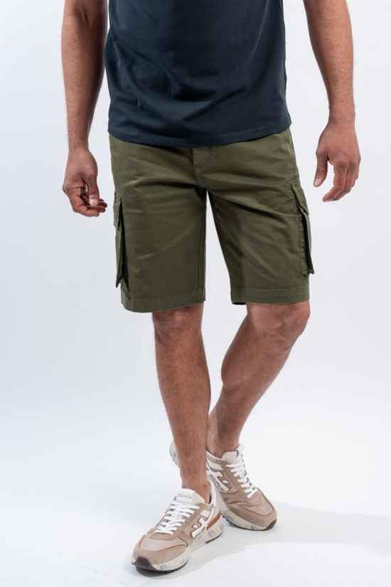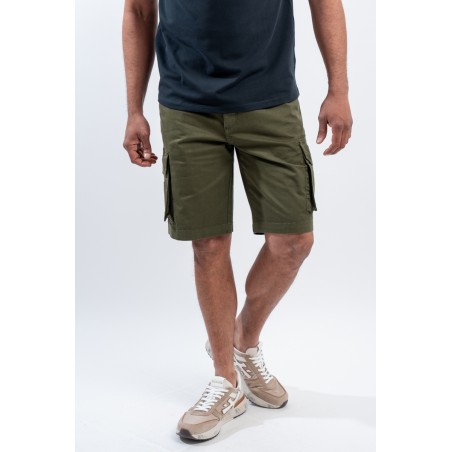 Men's Bermuda shorts sun 68 in stretch cotton. Cargo style with side pockets, French pockets. Central closure with covered zip and button.