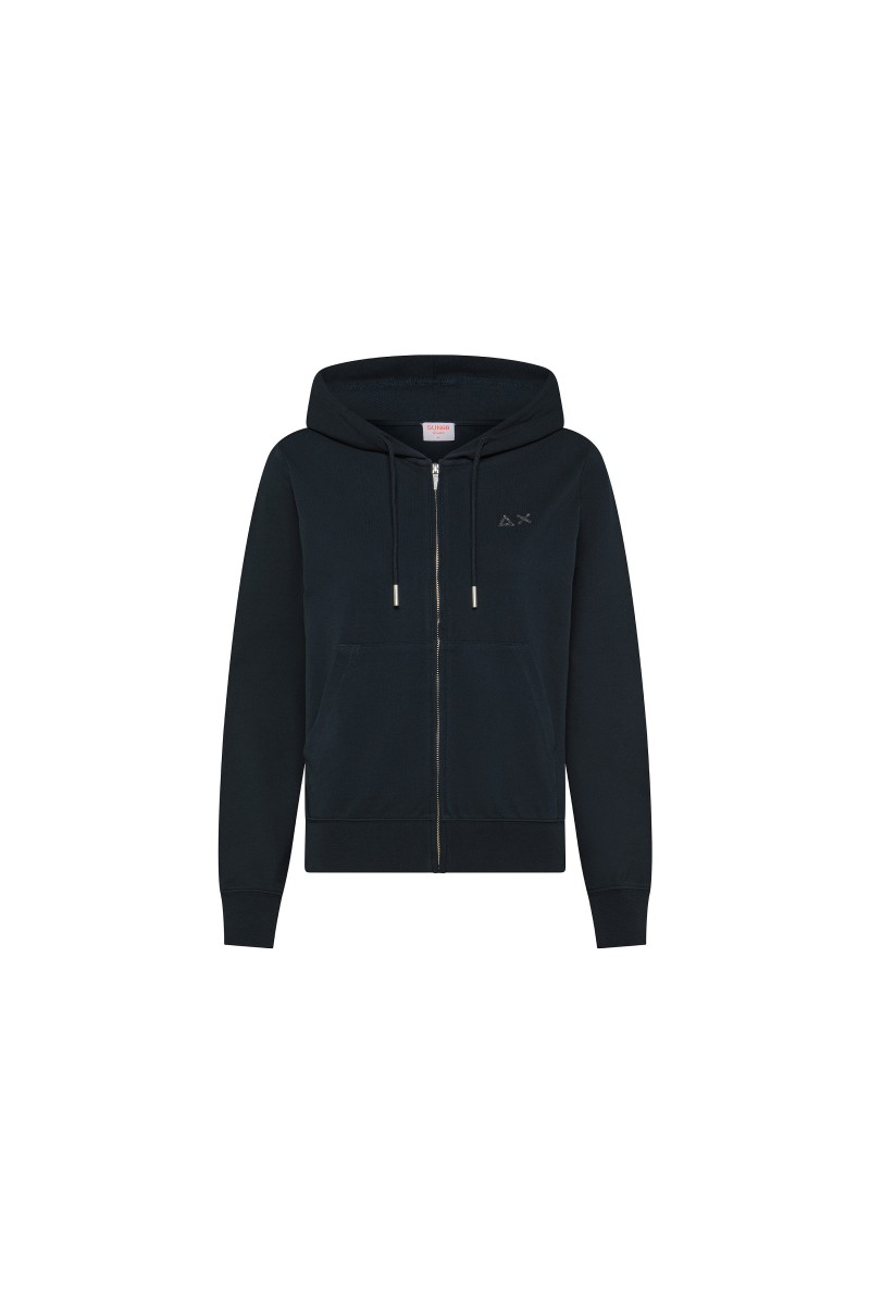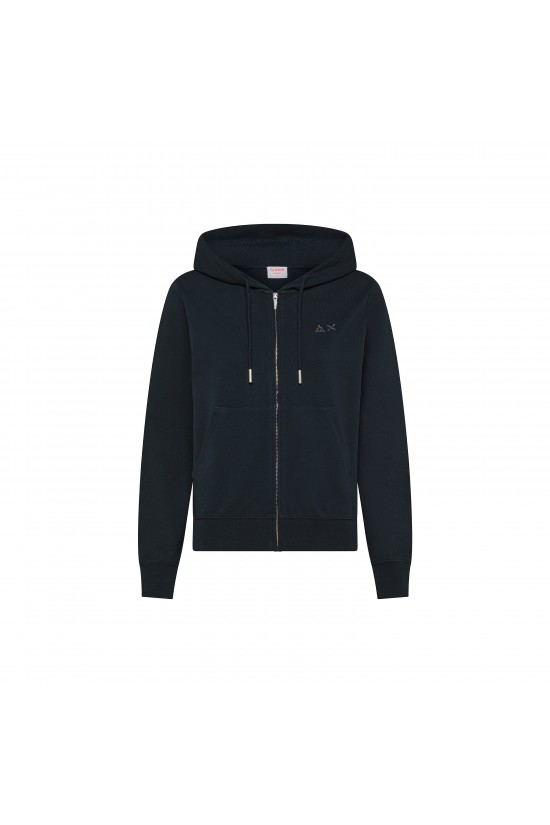 High quality cotton sweatshirt with zipper. Featuring a rhinestone SUN68 logo applied on the chest. With hood and drawstring adjustment. Ribbed sleeves and bottom. Kangaroo pockets.