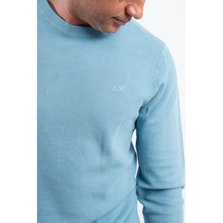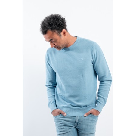 Crewneck sweater made of 100% cotton with rice stitch processing. Cuffs, neckline and hem are finished in ribbed. The color is given to the finished garment to give the garment a vintage and particular look that makes it unique.