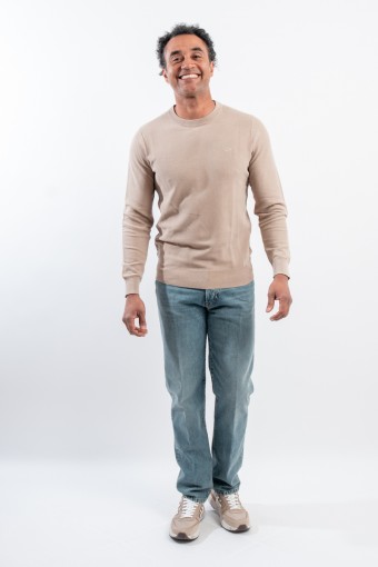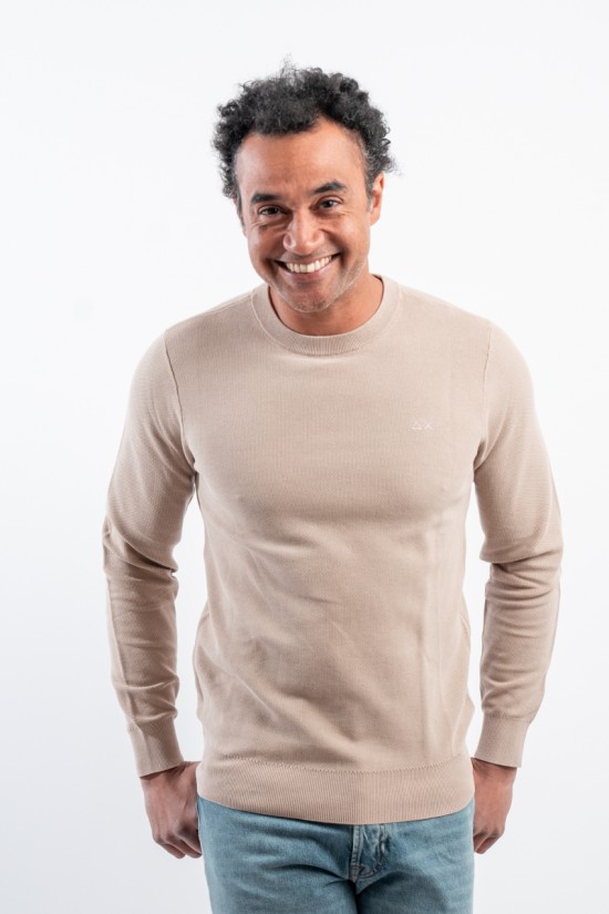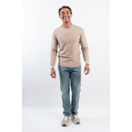 Crewneck sweater made of 100% cotton with rice stitch processing. Cuffs, neckline and hem are finished in ribbed. The color is given to the finished garment to give the garment a vintage and particular look that makes it unique.
