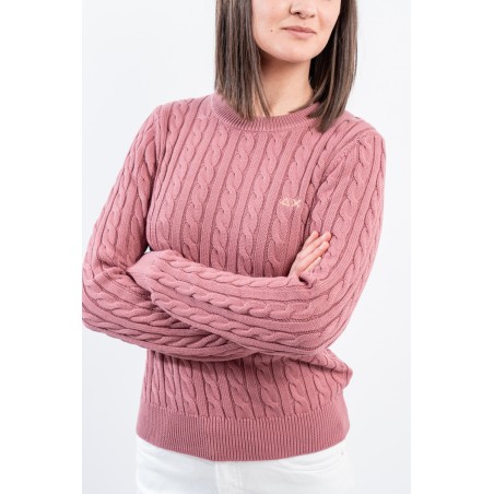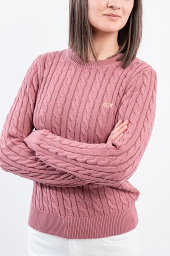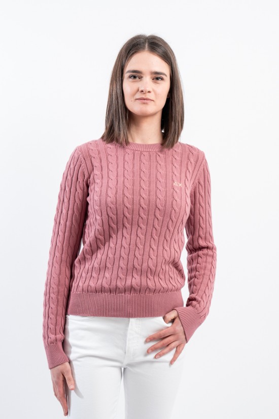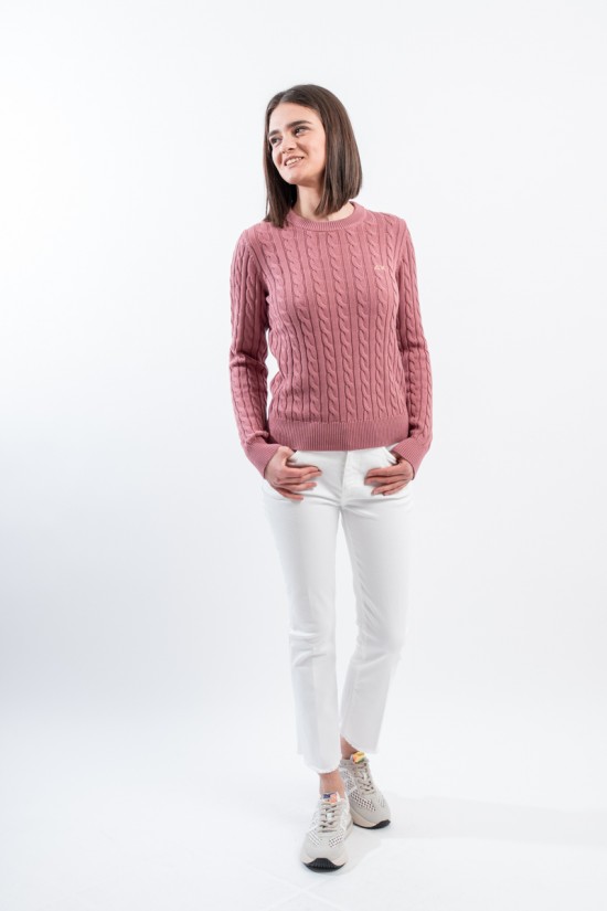 Crewneck sweater made of 100% cotton. Characterized by braided workmanship. Ribbed crew neck, cuffs and hem. Regular fit.