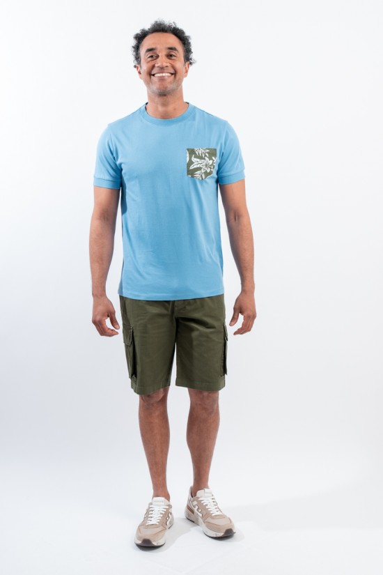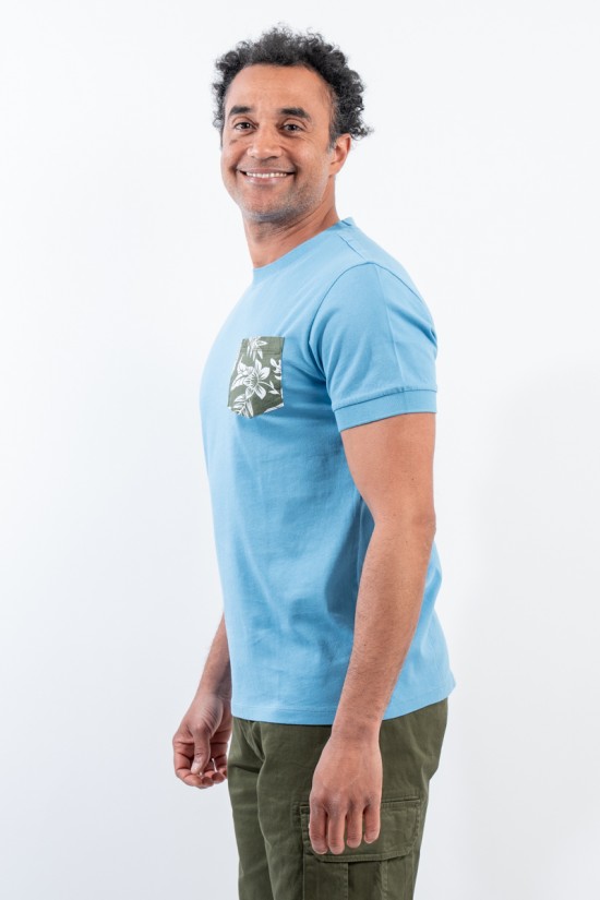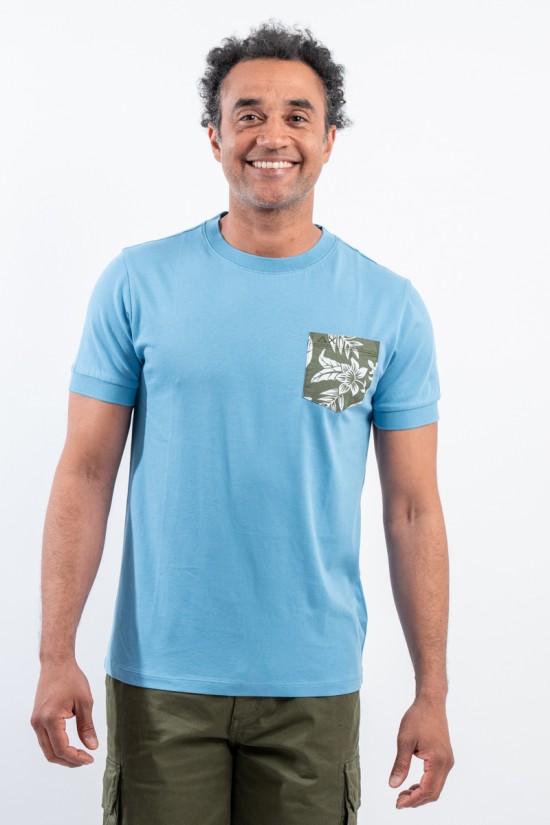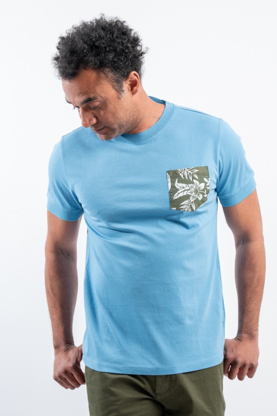 Crewneck T-shirt made of 100% cotton. Characterized by the checked pocket and embroidered logo. Slim fit.