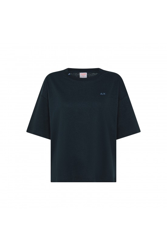 SUN68 short-sleeved T-shirt made of linen blend. Ribbed round neckline. Characterized by the oversized cut. Embellished Sun68 logo embroidered on the front.
