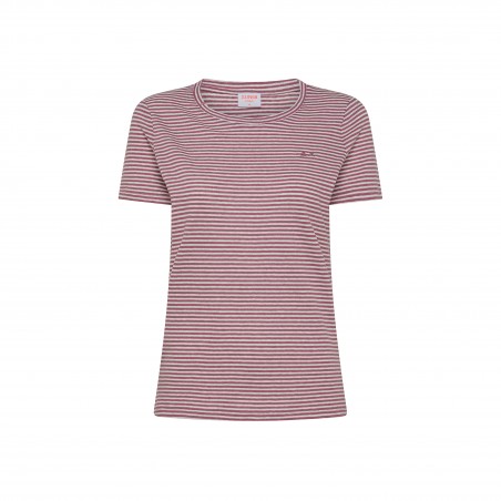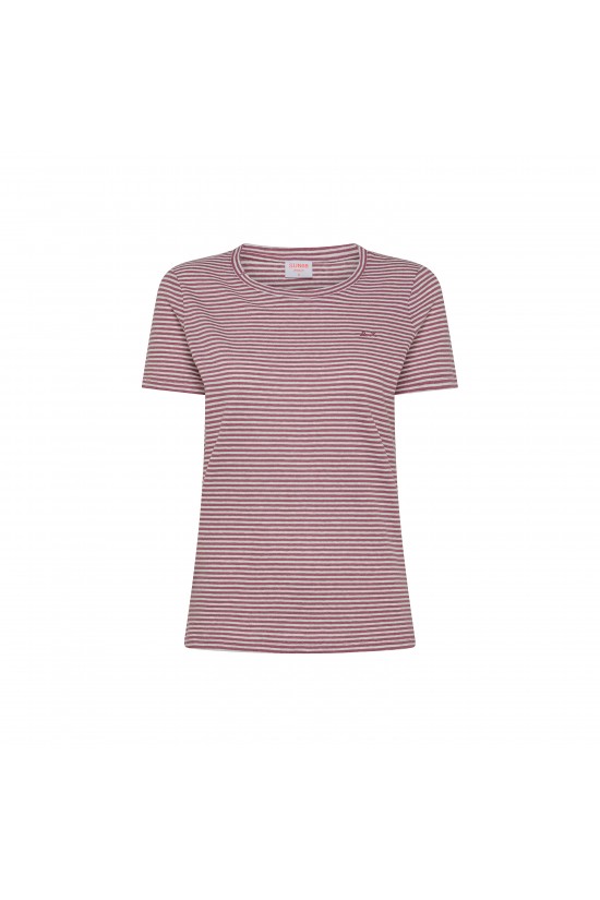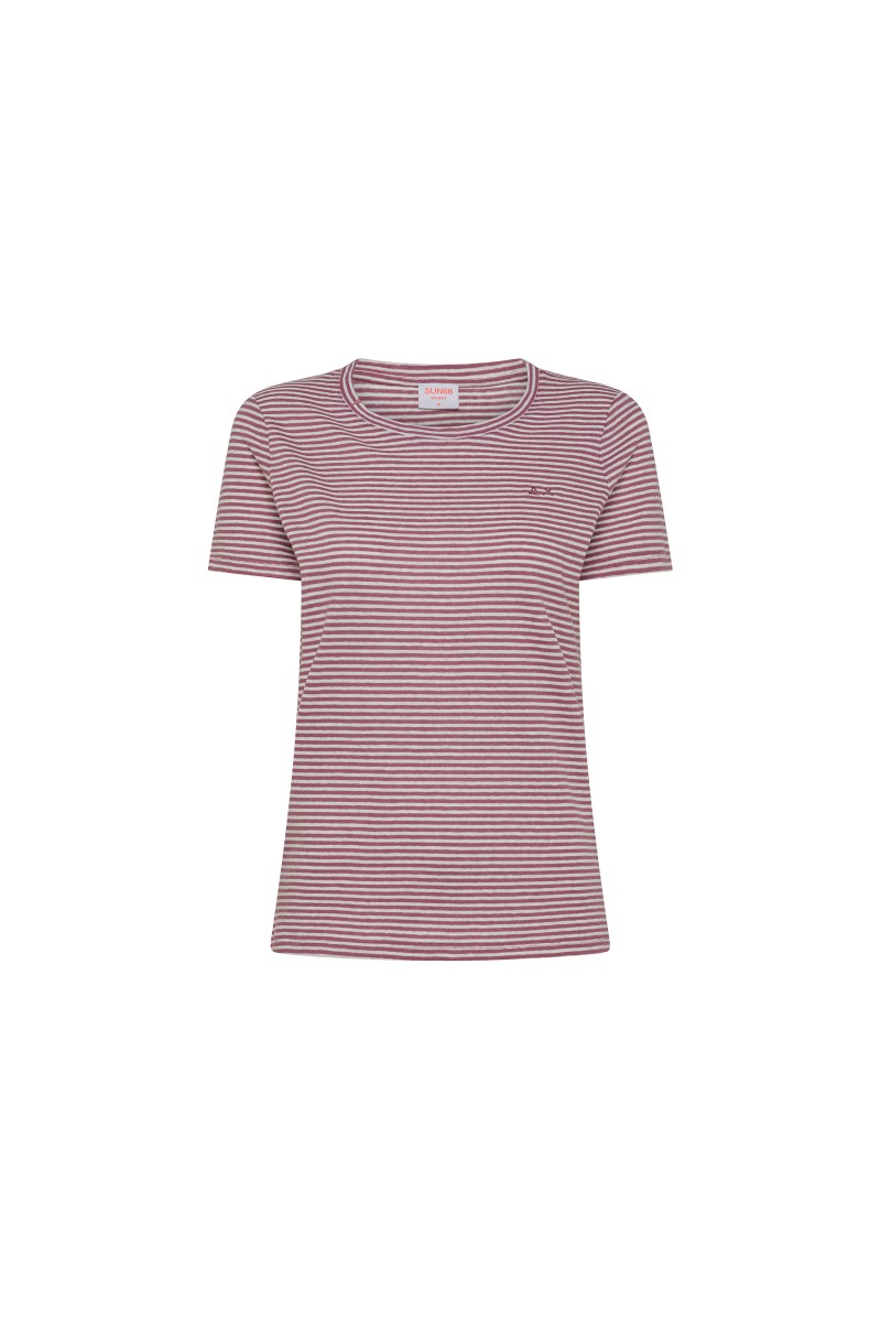 SUN68 short-sleeved T-shirt made of linen blend. Ribbed round neckline. Characterized by the striped pattern. Embellished with the Sun68 logo embroidered on the front.