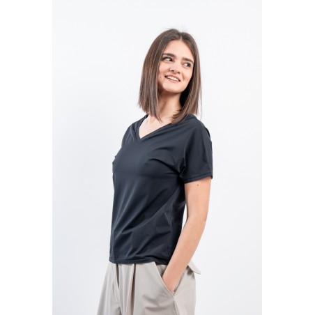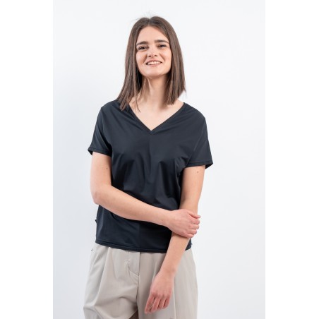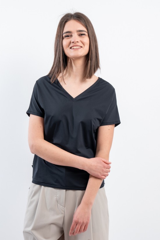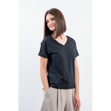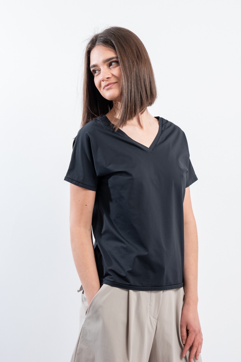The RRD t-shirt with its soft cut is a versatile and stylish garment, ideal for any season. Featuring a deep V-neckline, it offers an impeccable and refined fit. Made of garment-dyed stretch Oxford fabric, it has a delicate vintage effect that makes it unique. Cool, comfortable and light even on the hottest days, it guarantees freedom of movement. Simple but refined at the same time, it is the perfect choice for the woman who wants to combine elegance and ease on every occasion.
