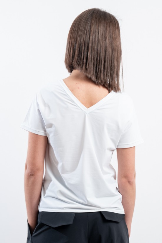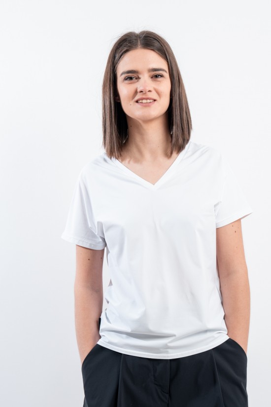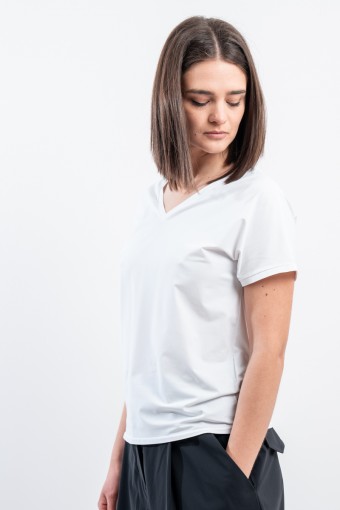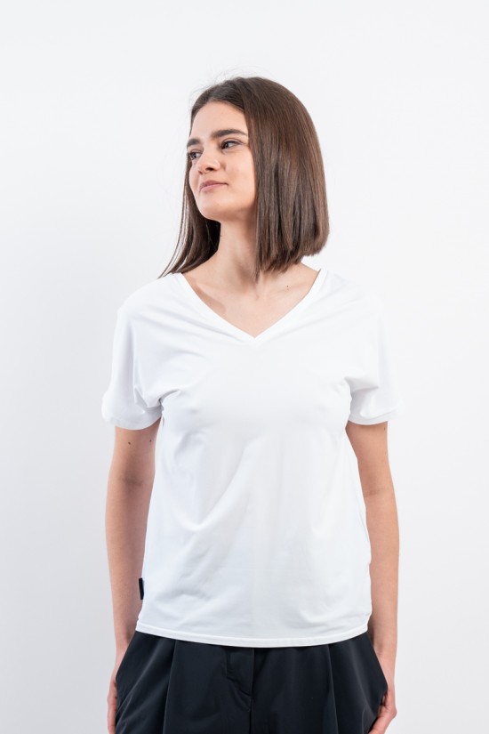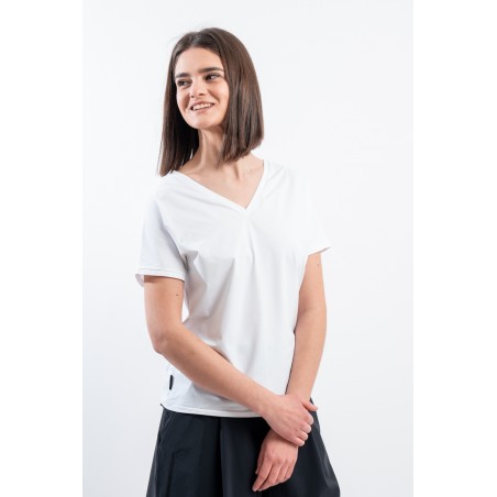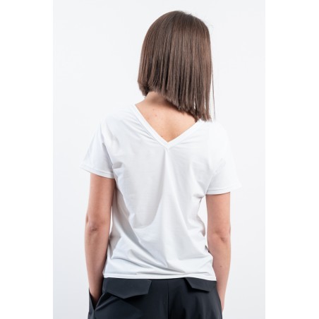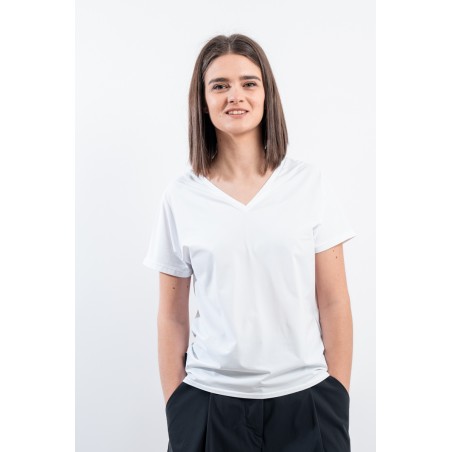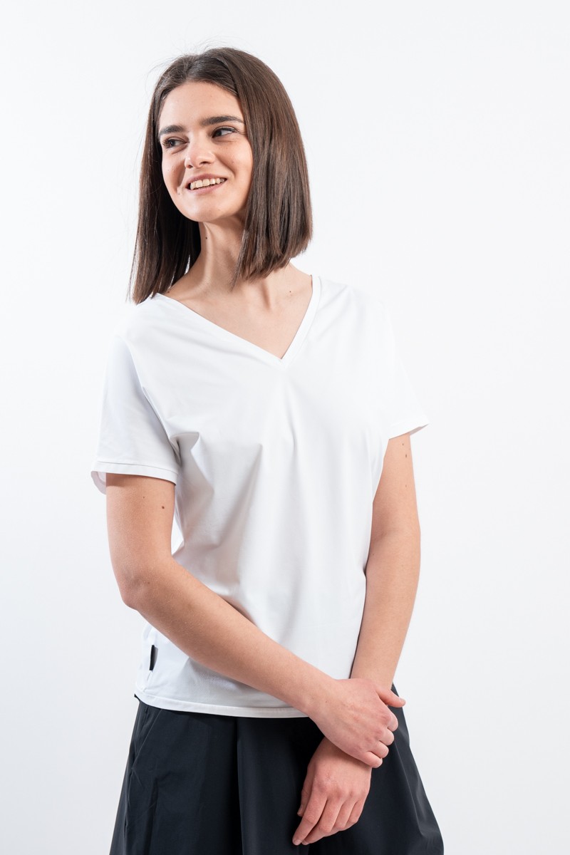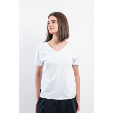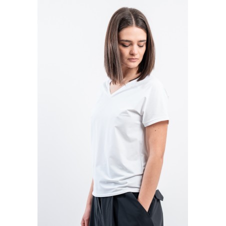 The RRD t-shirt with its soft cut is a versatile and stylish garment, ideal for any season. Featuring a deep V-neckline, it offers an impeccable and refined fit. Made of garment-dyed stretch Oxford fabric, it has a delicate vintage effect that makes it unique. Cool, comfortable and light even on the hottest days, it guarantees freedom of movement. Simple but refined at the same time, it is the perfect choice for the woman who wants to combine elegance and ease on every occasion.